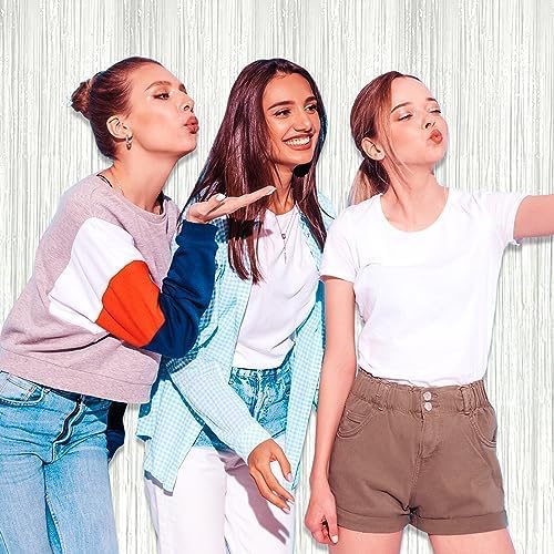 3 Pack Macaron White Foil Fringe Curtain Backdrop, 3.28Ft x 8.2Ft Metallic Tinsel Foil Fringe Streamer Curtains for Photo Booth, Christmas Day, Thanksgiving, Wedding, New Year Party Decorations