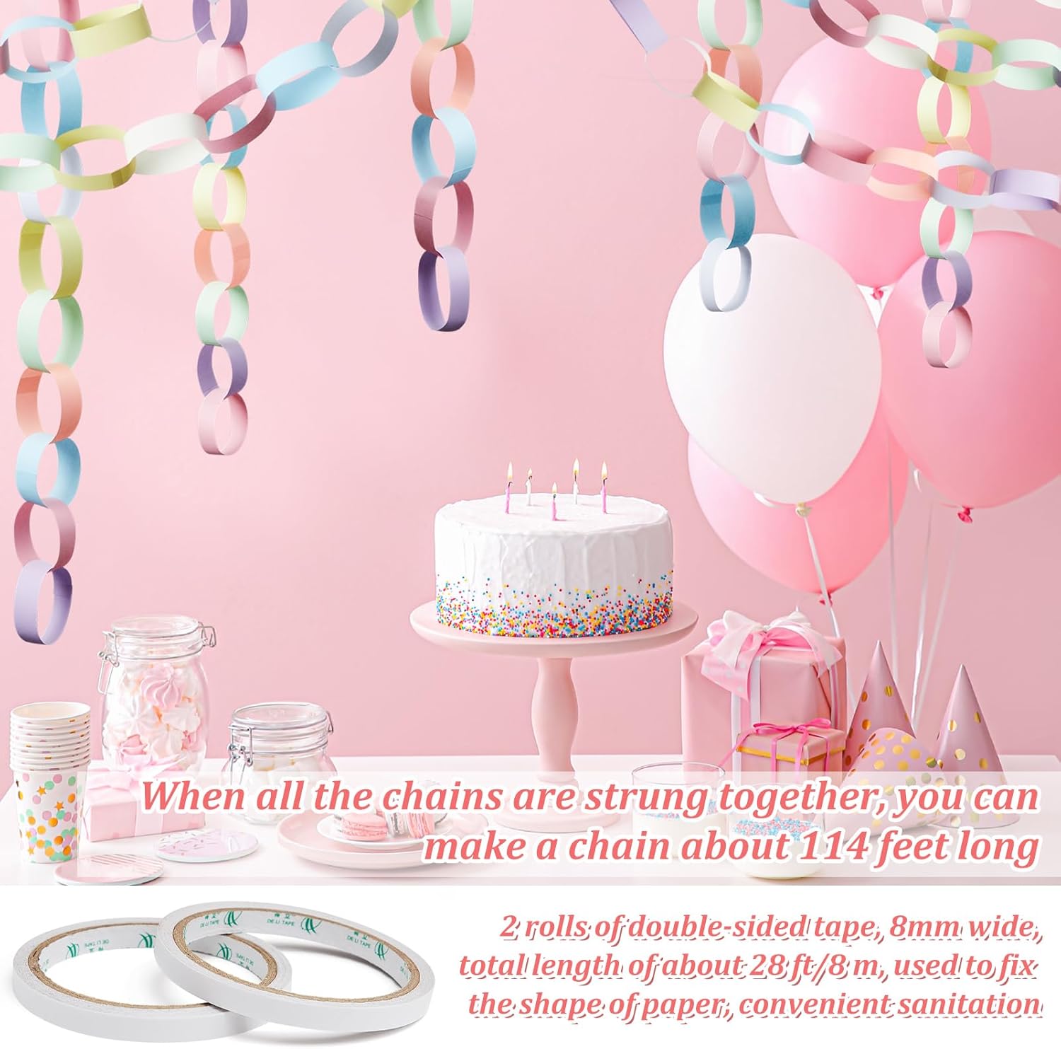 • Abundantly Colorful Paper Strips: the color palette is bountiful with our 600 sheets paper chain strips, equipped with 2 rolls of double sided tapes; The abundant quantity means you can create a paper chain that can stretch up to 28 feet in total length; The multitude of colors available broadens your design spectrum, bringing out ingenuity and creativity