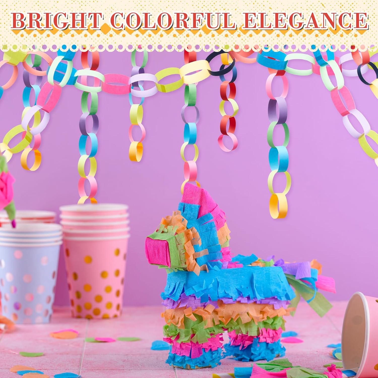 • Abundantly Colorful Paper Strips: the color palette is bountiful with our 600 sheets paper chain strips, equipped with 2 rolls of double sided tapes; The abundant quantity means you can create a paper chain that can stretch up to 28 feet in total length; The multitude of colors available broadens your design spectrum, bringing out ingenuity and creativity