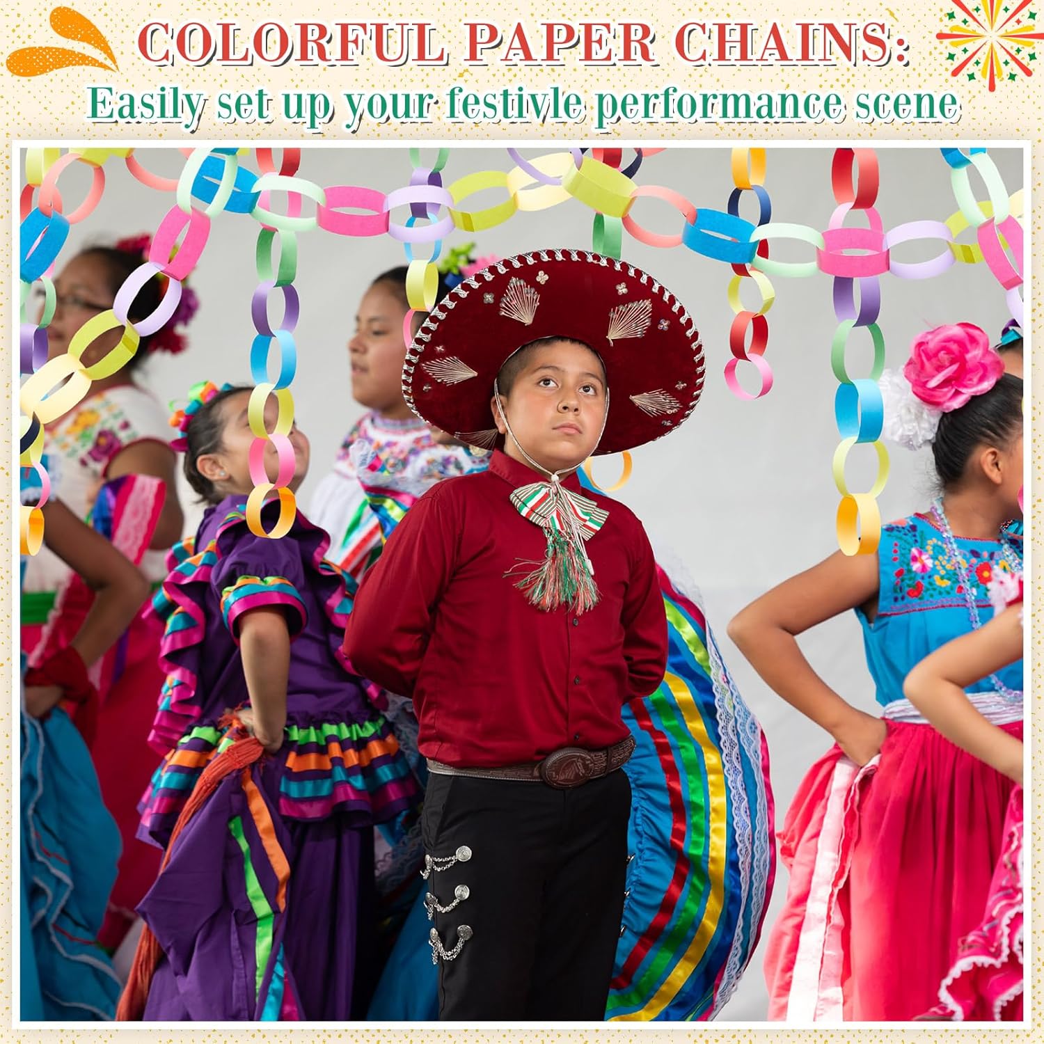 Lincia 600 Sheet Halloween Paper Chain Garland, Construction DIY Crafts Chain Strip for Fall Thanksgiving Party Decor, 1x8 Inch with Double Sided Tape (Mexican Festival)