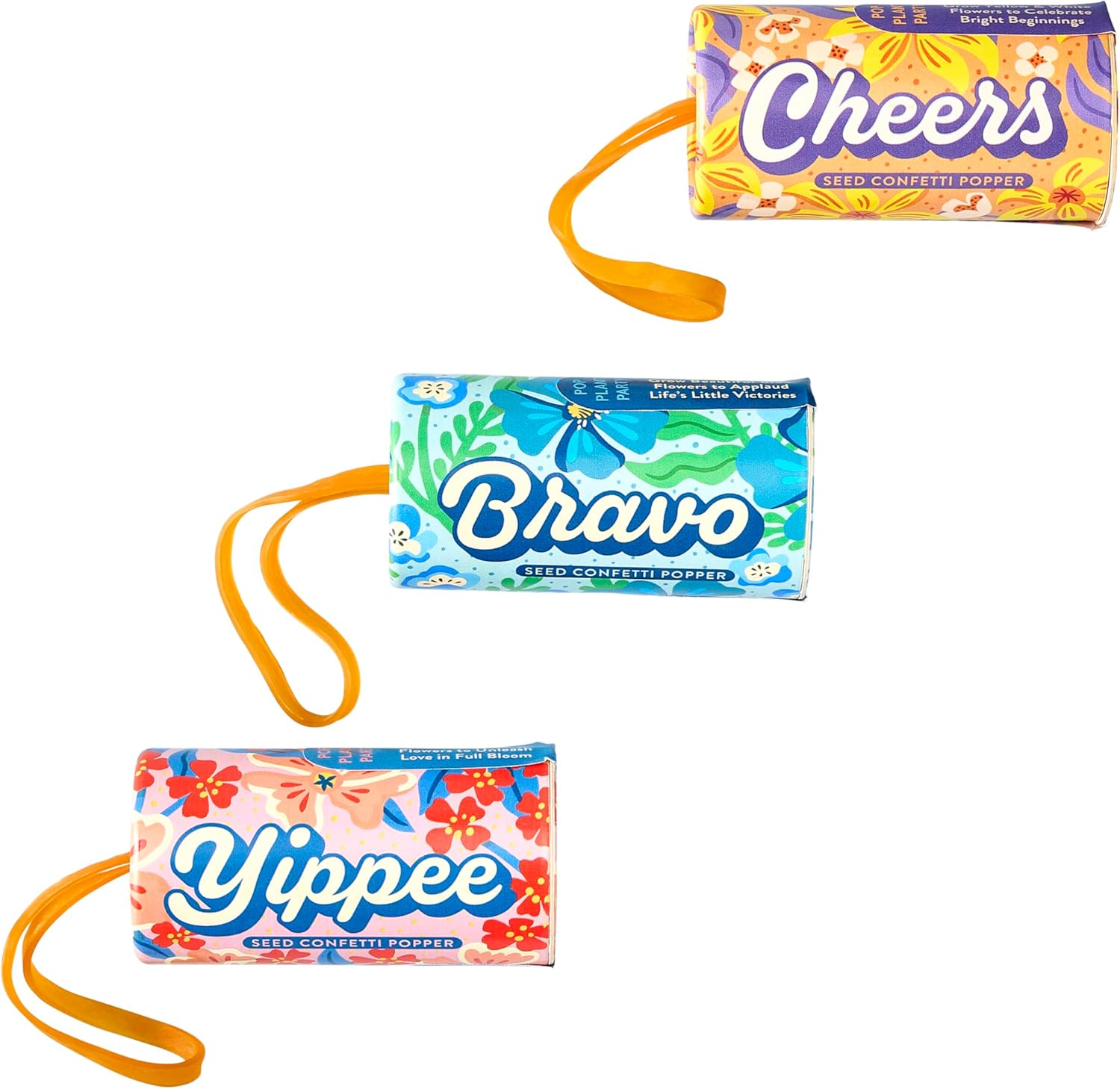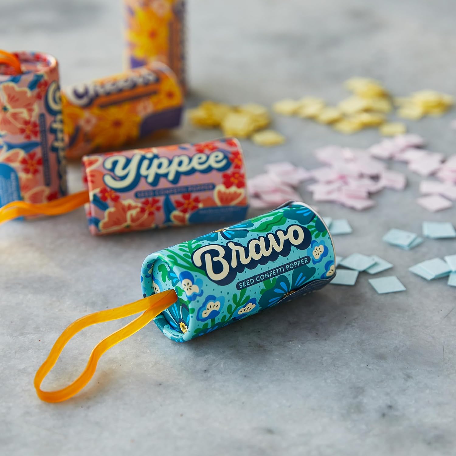 • Non-Toxic & Plastic-Free: Our poppers are made from plantable seed paper, a sustainable solution for celebrations; No plastic - No guilt; Just joyful bursts of flower seeds that transform into beautiful blooms; Great as Earth Day gifts, easter basket stuffers, kids party favors, or new years eve poppers, these confetti poppers are fun for all ages; Each seeded paper plantable design promotes pollinator activity while reducing waste and supporting biodiversity