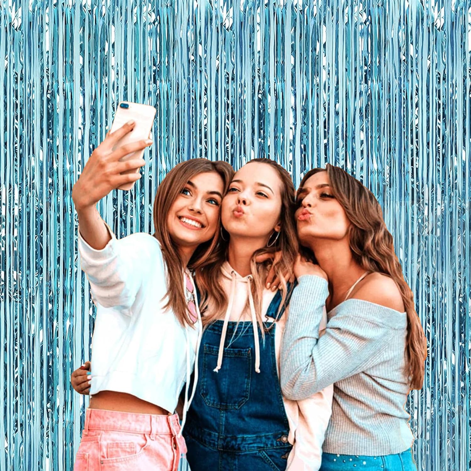 4P Metallic Foil Fringe Tinsel Table Skirts for Rectangle Tables Backdrop Banner Streamer Garland Curtains for Parade Floats Wedding Graduation Anniversary Birthday Parties Decoration(Light Blue)