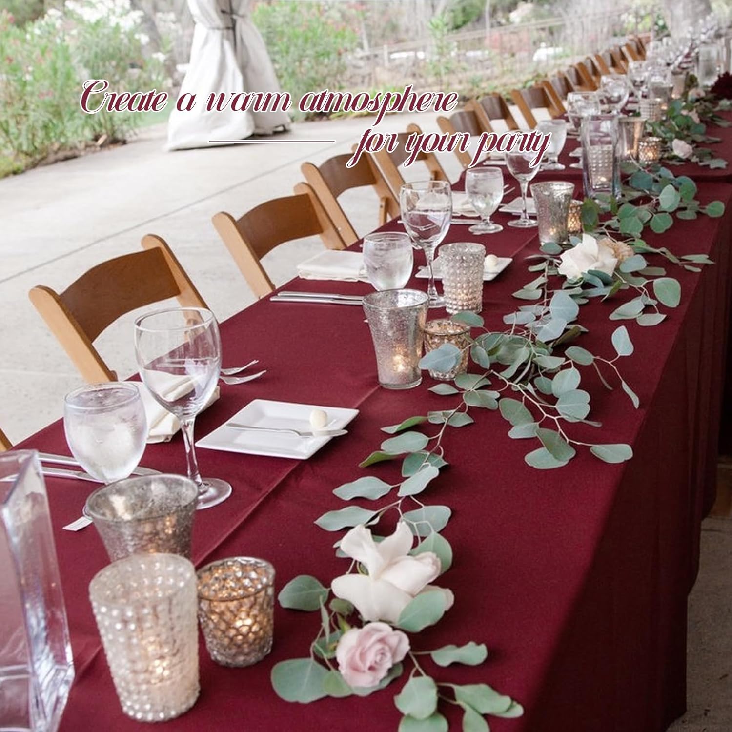 • ๐Ÿ‘ใ€ Package Includeใ€‘You will receive 12 packs of 60x102 Inch burgundy rectangle polyester tablecloths, perfect for standard 6ft table, providing 15 inch drop. The product comes individually packaged in a re-sealable storage bag. Burgundy tablecover is more luxurious, classic and gracious, ideal for both formal & casual settings and makes a great gift for all occasions. Protect your table from scratch,stains and sun rays while decorate your table. Quality of 12 packs is sufficient for your needs.