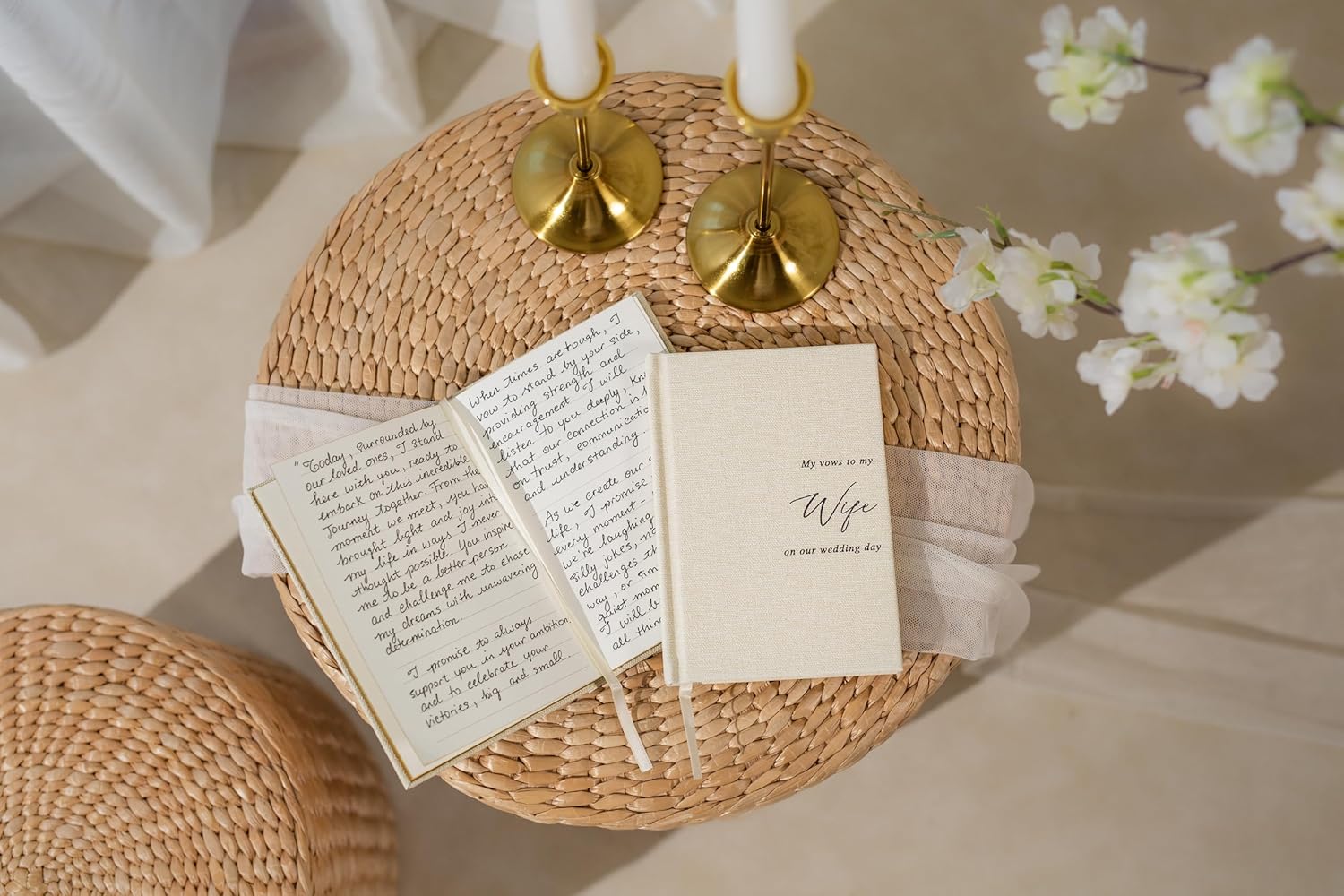 • Our Vow Book Set provides couples with a tangible symbol of their commitment and love. These elegantly designed books serve as a platform for couples to express their deepest emotions and promises to each other on their wedding day. They also make for a thoughtful engagement or bridal shower gift, enhancing the sentimental value of any occasion.