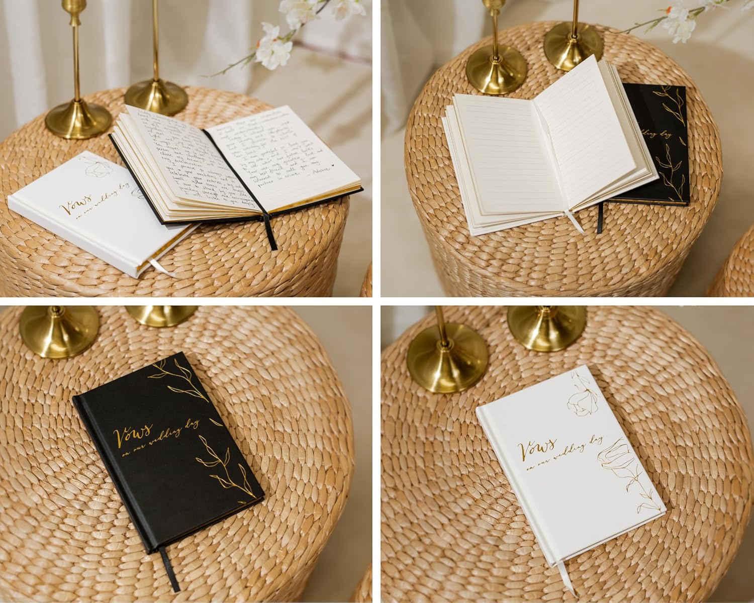 Vows On Our Wedding Day Vow Books (Set of 2) - Black & White Pocket Sized Foil Embossed Foliage Design Wedding Ceremony Vow Renewal Speech Notebook Planner, Gift for Bride & Groom Newly Engaged Couple