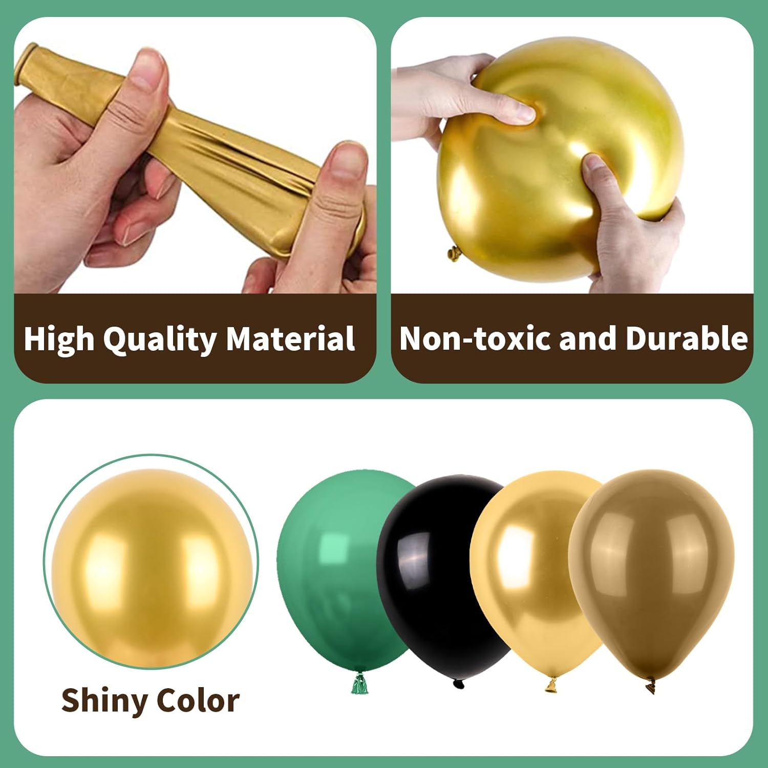 • 【Nice Party Decorations】: Infuse your gathering with warmth and joy with our lovely green black gold balloons. Whether gracing tables as exquisite centerpieces or strategically scattered throughout the venue, these colorful balloons serve as the good embellishment, creating unforgettable moments of laughter and connection with loved ones.