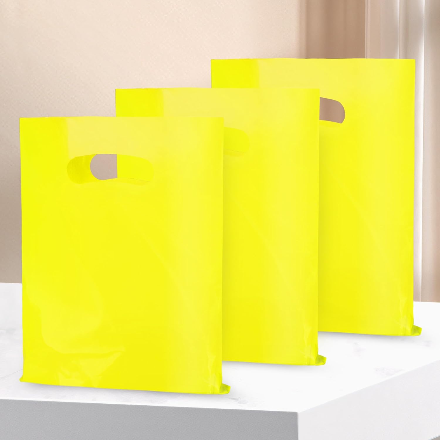 • 【Premium Thick & Durable Goodie Bags】With high-quality plastic material, the yellow party favor bags are 2.36 mils on each side, solid and durable. It is reusable, and not easy to tear and can be used in many field, including wholesale and retail.