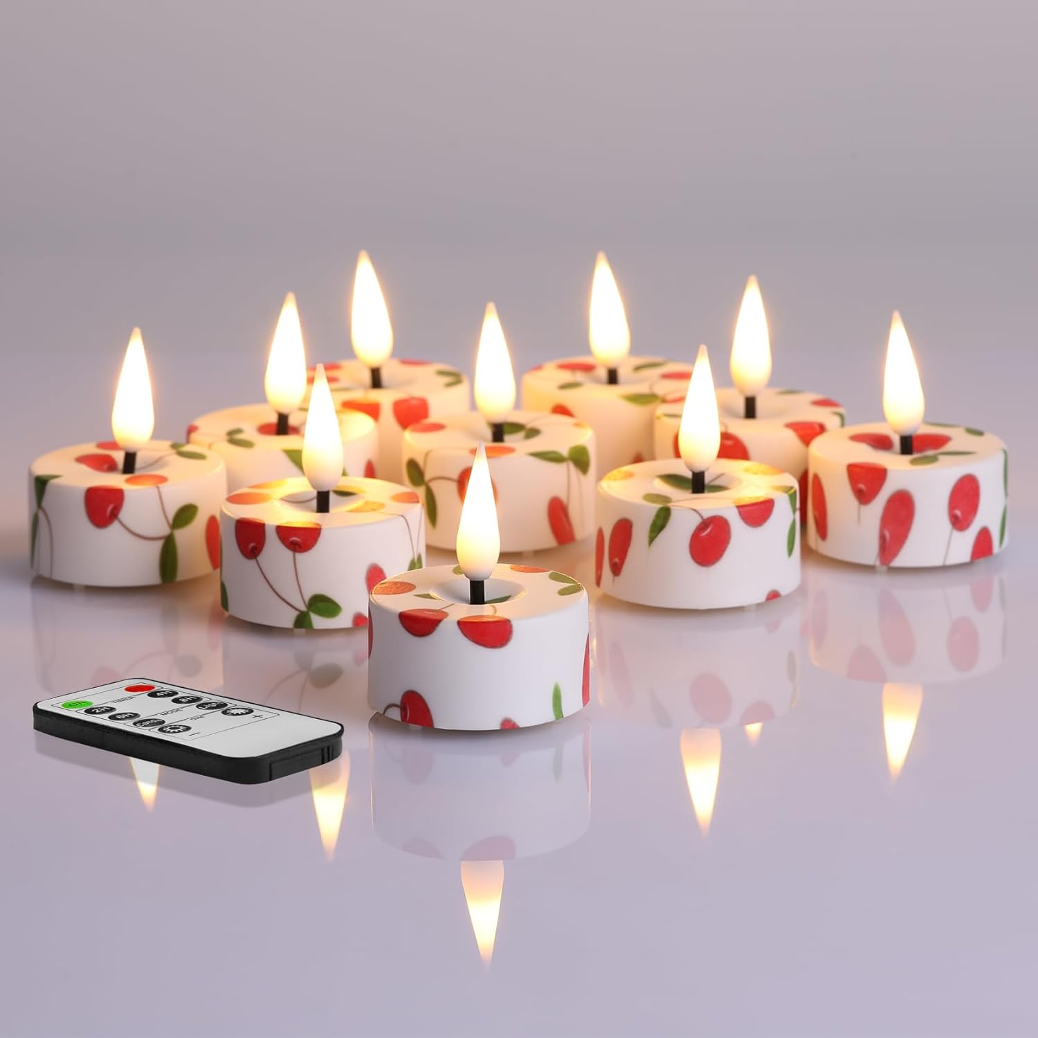 • Attractive Decor & Gift Option - this unique set of red cherries pattern LED tealights is perfect for daily home decor, also can be placed in your favorite tea candle holders or given as gifts
