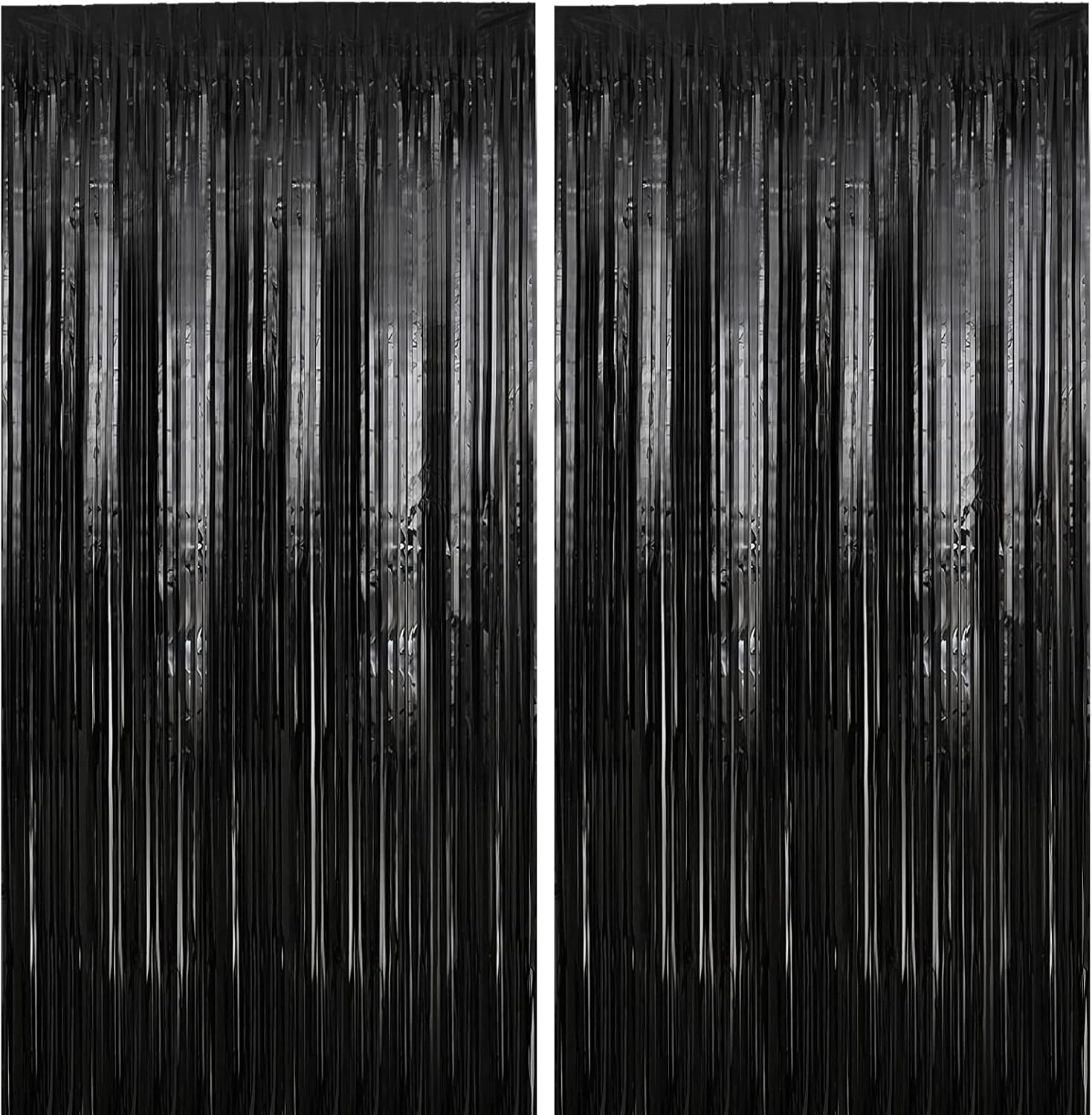 2 Pack 3.28 ft x 6.56 ft Black Tinsel Curtain Party Backdrop Decorations, Metallic Foil Fringe Backdrop Door for Halloween, Christmas, Birthday Graduation Wedding Party Streamers Photo Backdrop.