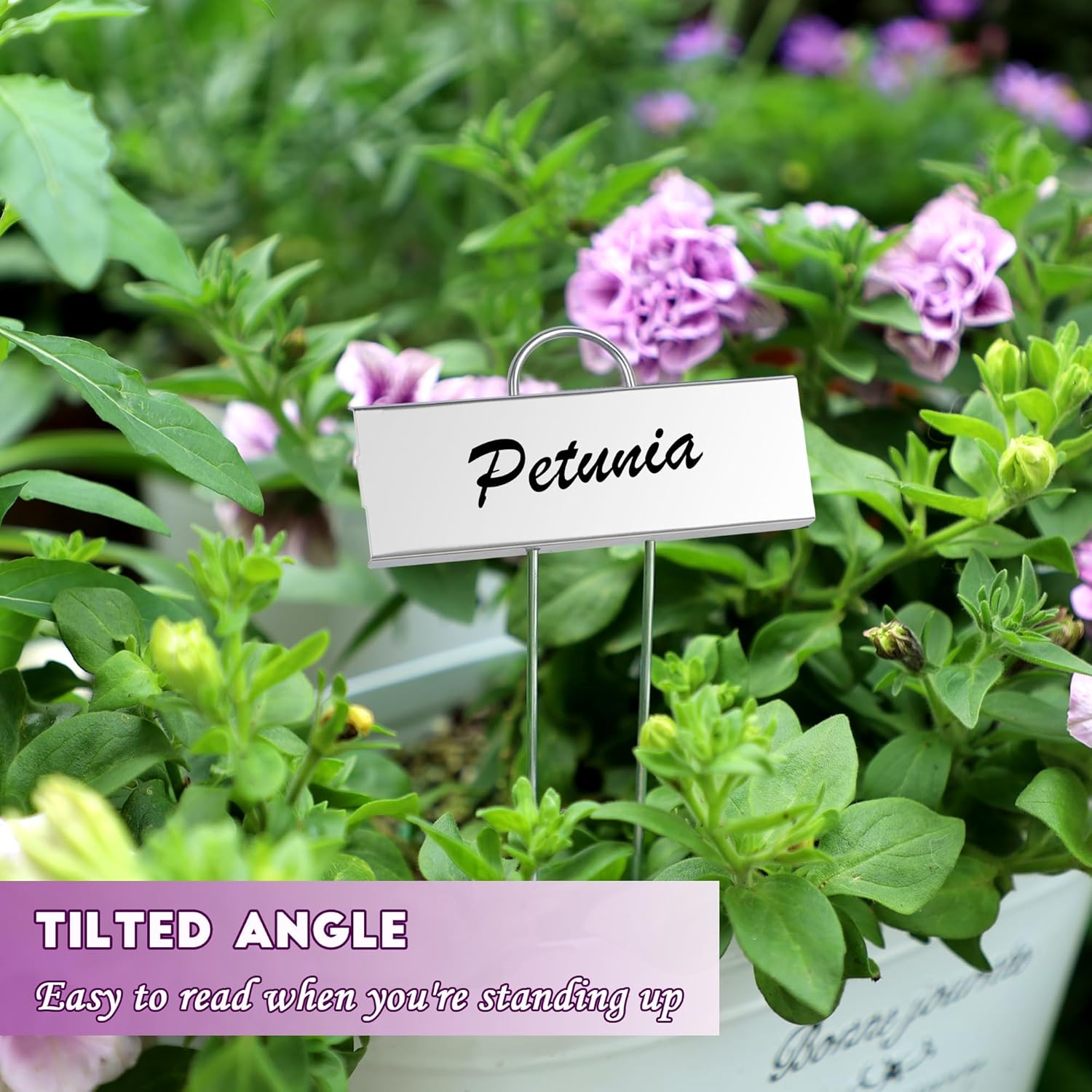 • ♥ Stable Two-Foot & Tilted Angle: The stable 2-foot design of the plant label stakes are simple to insert into the soil and will stay put for years to come. The slightly sloping angle makes it easy to read when you're standing up, it really helps to remind you what's the where.
