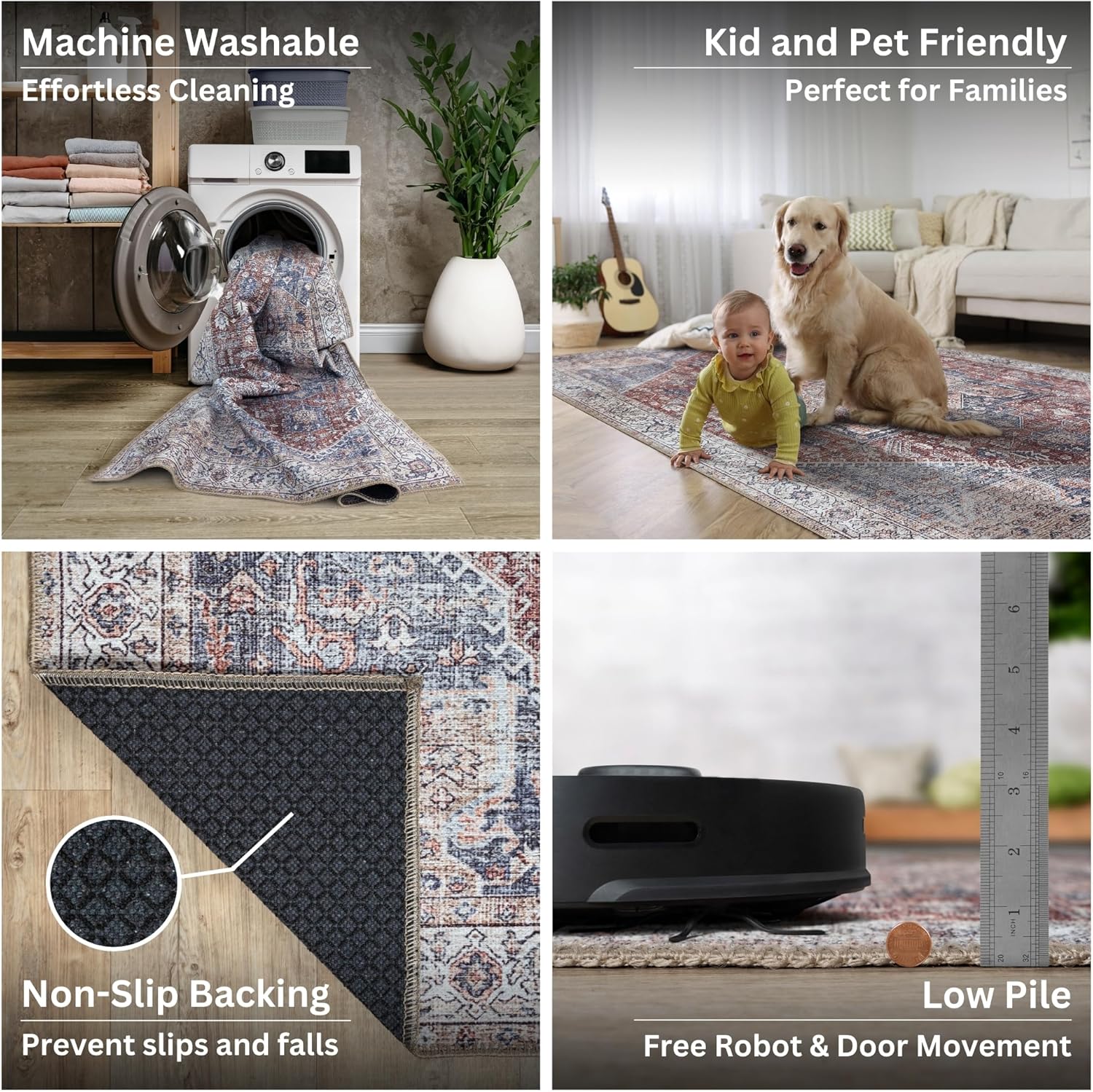 • EASY TO SETUP AND NON-SLIP: This one-piece machine washable rug with non-slip backing attached eliminates any additional setup. Simply unfold and lay flat upon arrival in the desired space. Non-slip backing prevents the rug from moving or sliding without the need for additional rug pad or grippers.