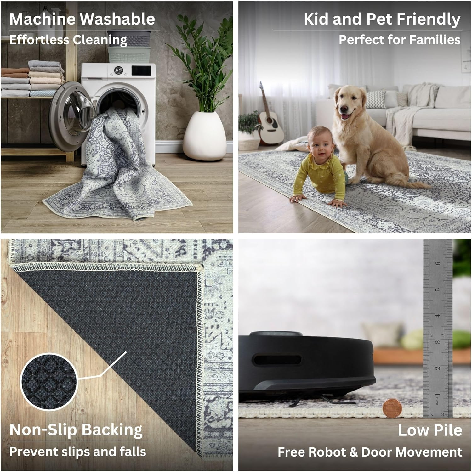 • EASY TO SETUP AND NON-SLIP: This one-piece machine washable rug with non-slip backing attached eliminates any additional setup. Simply unfold and lay flat upon arrival in the desired space. Non-slip backing prevents the rug from moving or sliding without the need for additional rug pad or grippers.