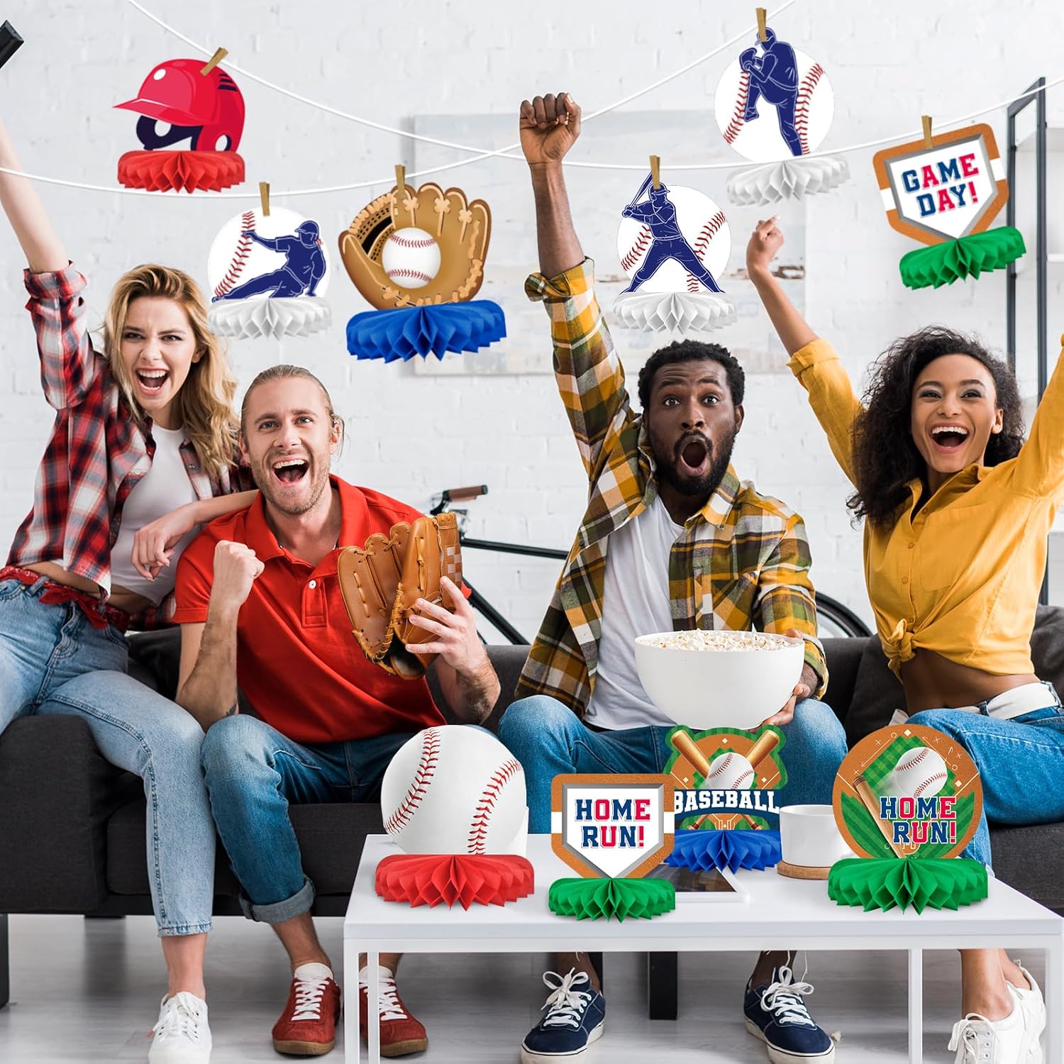 Baseball Party Supplies:Baseball-Themed Honeycomb Centerpiece for Baseball Birthday & Gameday Celebrations - Essential Decorations & Favors