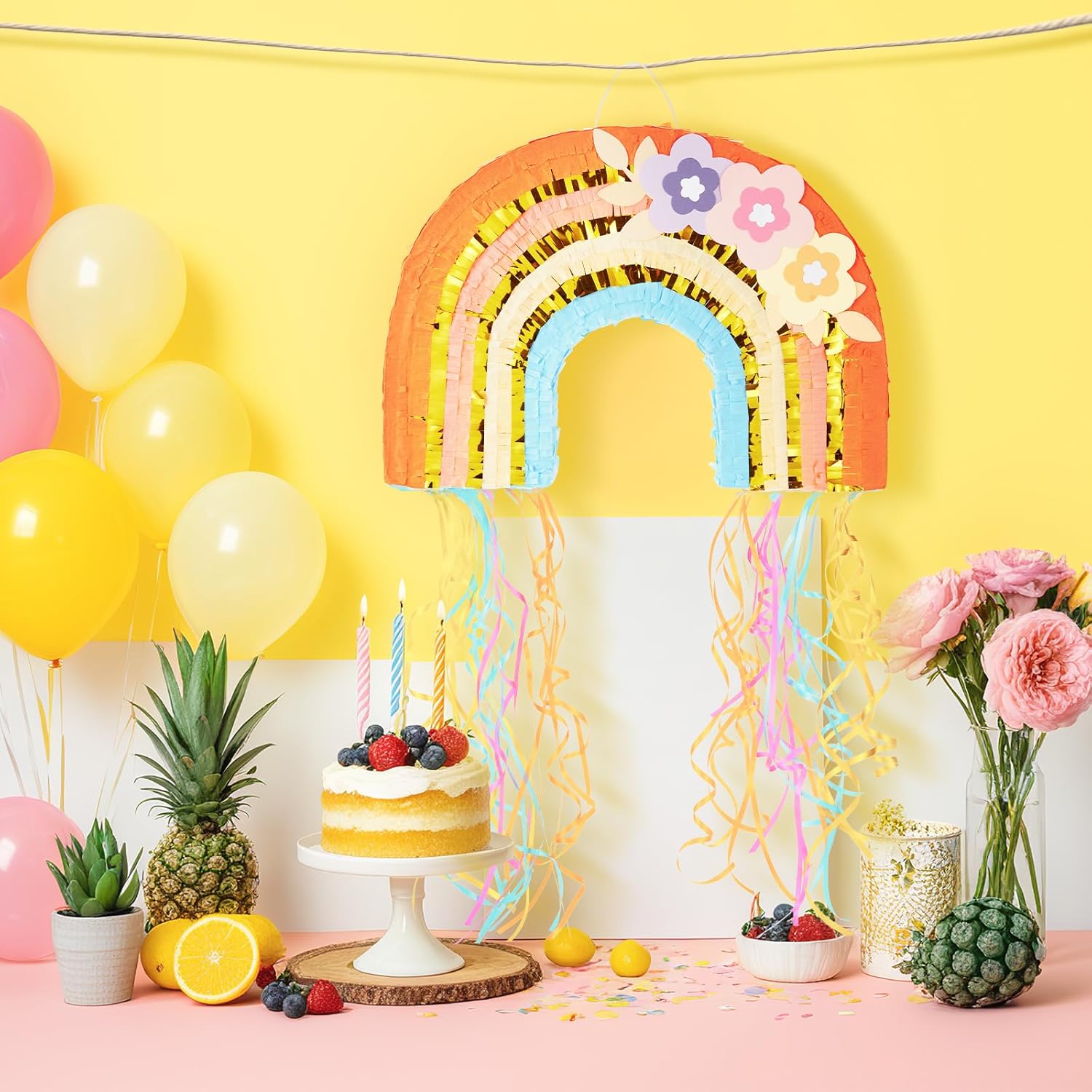 • 【VERSATILE DECORATION】 - Perfect for children's parties and festive gatherings, our colorful rainbow piñata is a versatile party decoration that promises hours of fun. Also you can use it as home decor or photo prop to make it a addition that will instantly elevate the atmosphere.