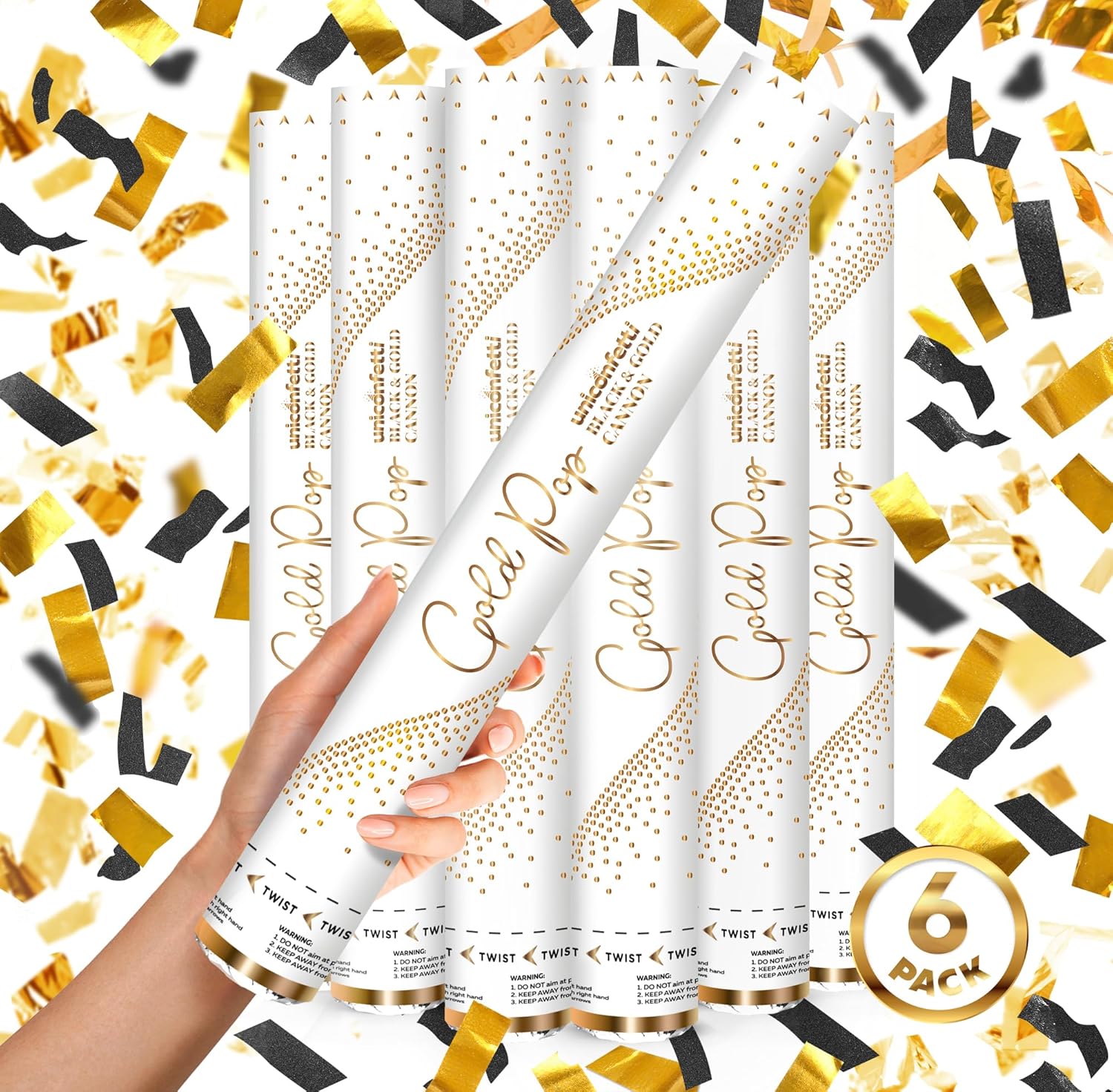 • ๐ŸŽ‰ 6-PACK OF EXCITEMENT - Each box contains 6 BIG BOY CANNONS (16"), for Black & Gold Wedding, Wedding Send Off, Bachelorette, New Years Eve, Parties, Birthday, Graduation!