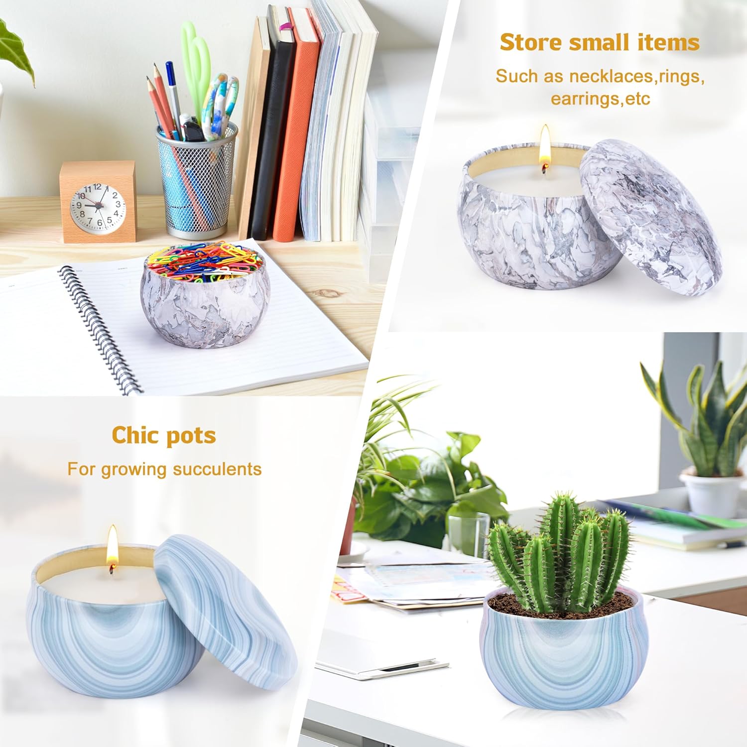 • ๐Ÿ’ใ€Beautiful Jarใ€‘This aromatherapy candle is packed in a beautiful round jar with beautiful marble element patterns on it, fully demonstrating your high taste! When you run out of soy wax, the empty jars can also be used to store earrings, rings, necklaces and other small items, or even become delicate containers for growing small plants.