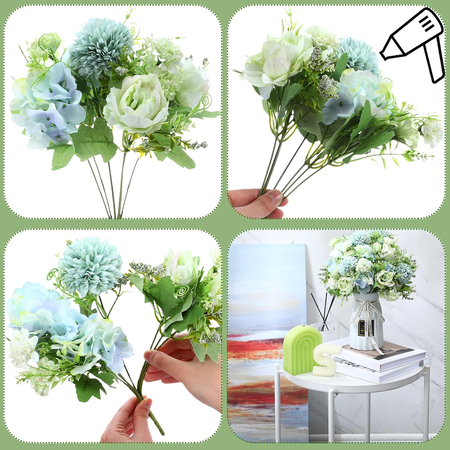 • Attractive Appearance: the fake flowers bouquet is shaped with white green peonies, embellished with green leaves, vivid and beautiful, designed with 7 flower heads as a bundle, including hydrangea, peony and more, bushy and vibrant, which will be favored by most people