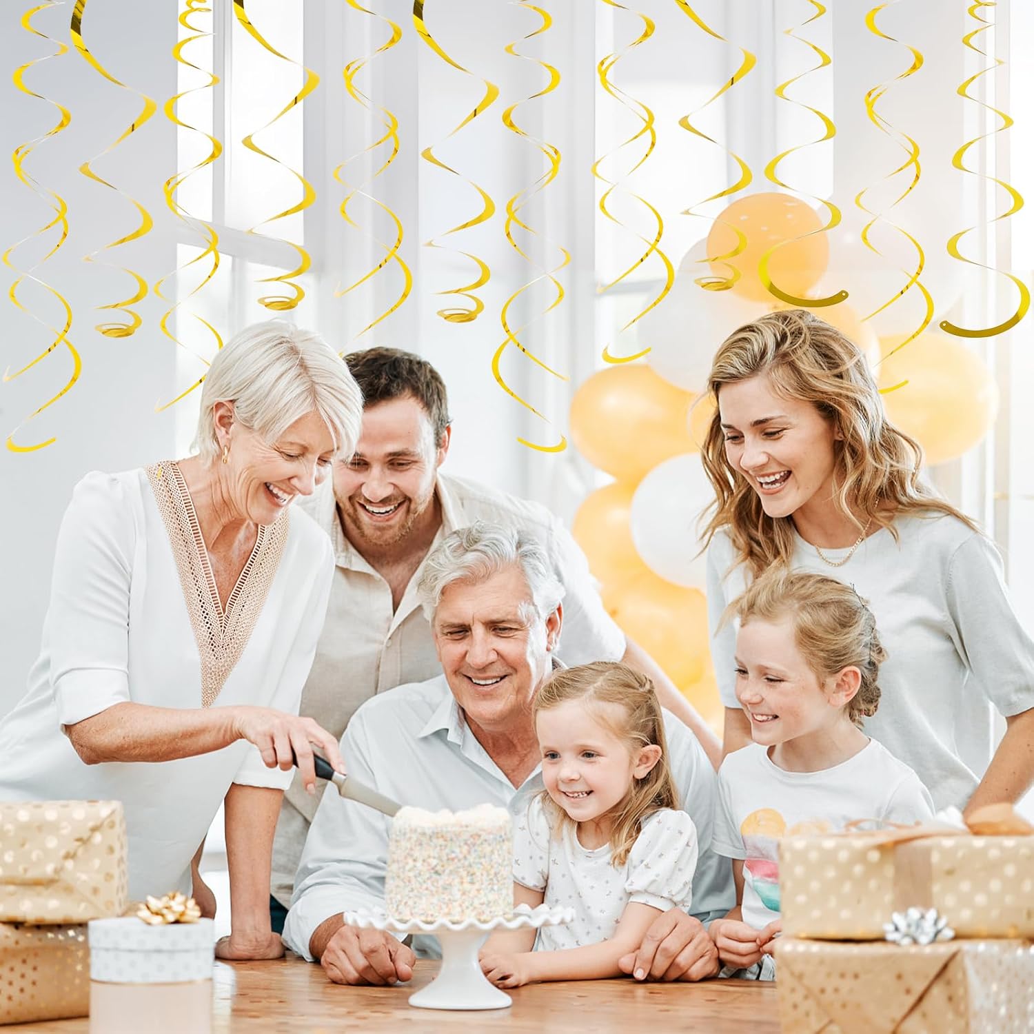 24 PCS Gold Foil Hanging Swirl, Sparkle Ceiling Hanging Decorations, Plastic Streamer Party Decorations, Swirl Decorations with Double-Swirls and Single-Swirls for Birthday, Baby Shower, Christmas