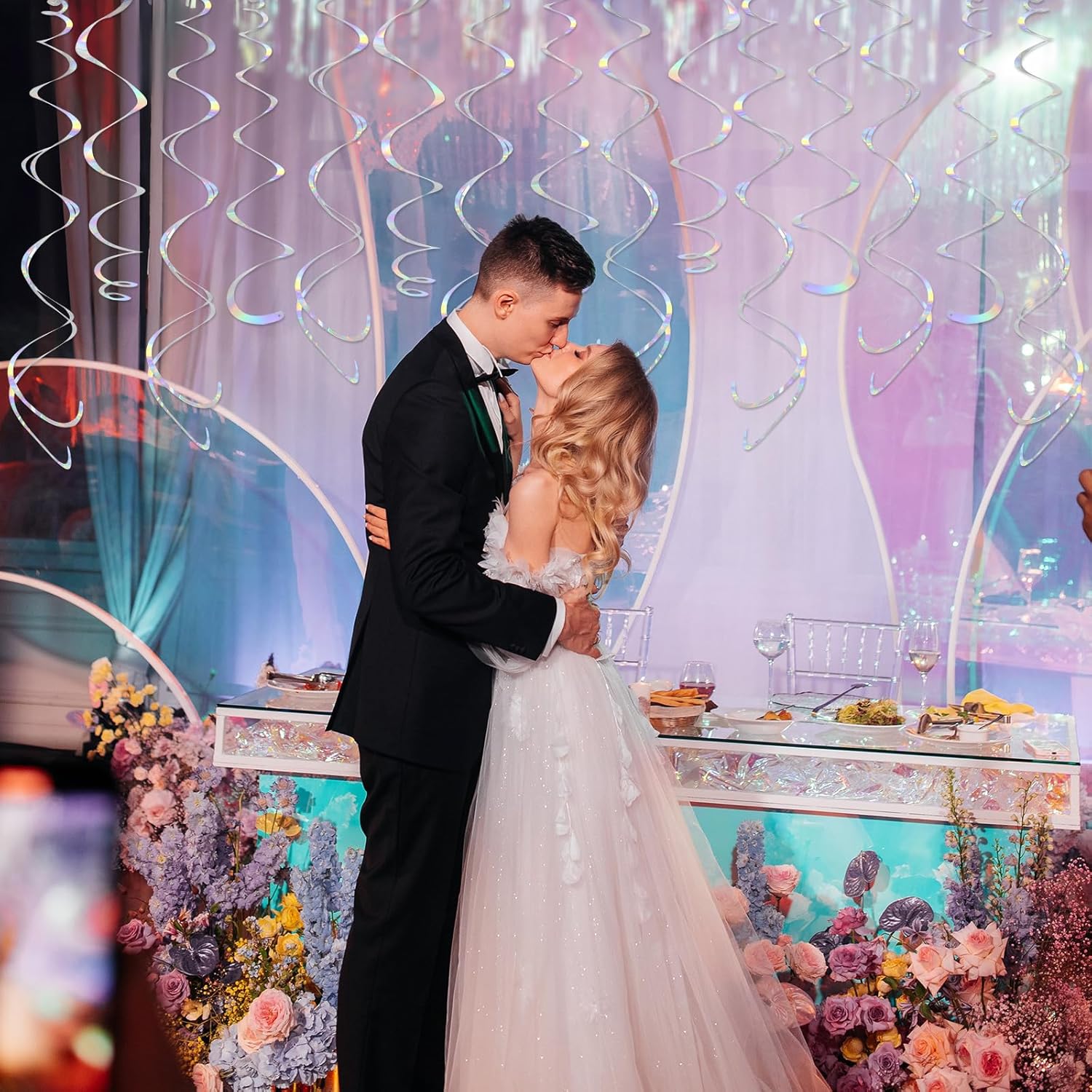 24 PCS Iridescent Hanging Swirl, Shinny Holographic Ceiling Decorations, Plastic Streamer Party Decorations with Double-Swirls and Single-Swirls for Birthday Decorations, Wedding, Baby Shower