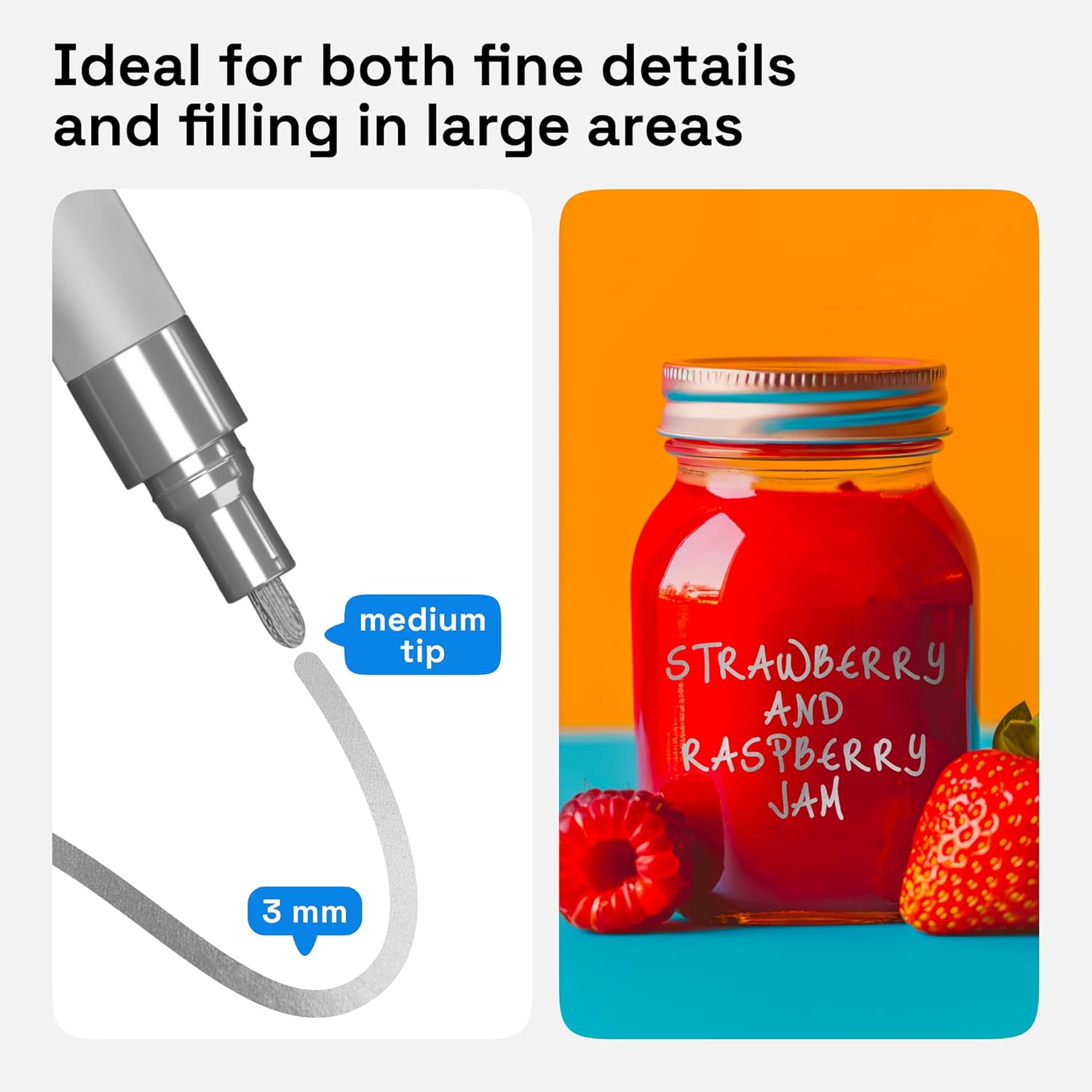 ARTISTRO 2 Silver Permanent Marker - Waterproof Markers for Tire, Fabric, Rocks, Glass, Ceramic, Wood, Paper - Oil Based Paint Pens - Medium Tip 3mm