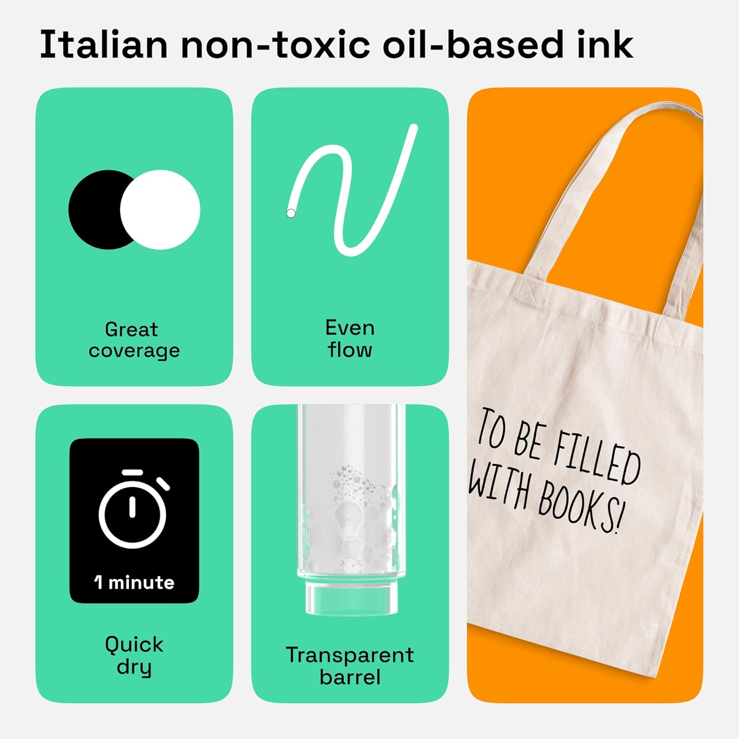 • Multiple Surfaces: Use these oil paint pens as oil markers for plastic and glass or as oil based fabric markers for clothes. Each black and white marker permanent is water-resistant. They’re also good for leather, vinyl, or epoxy resin. And the nibs are solid, even on rocks!