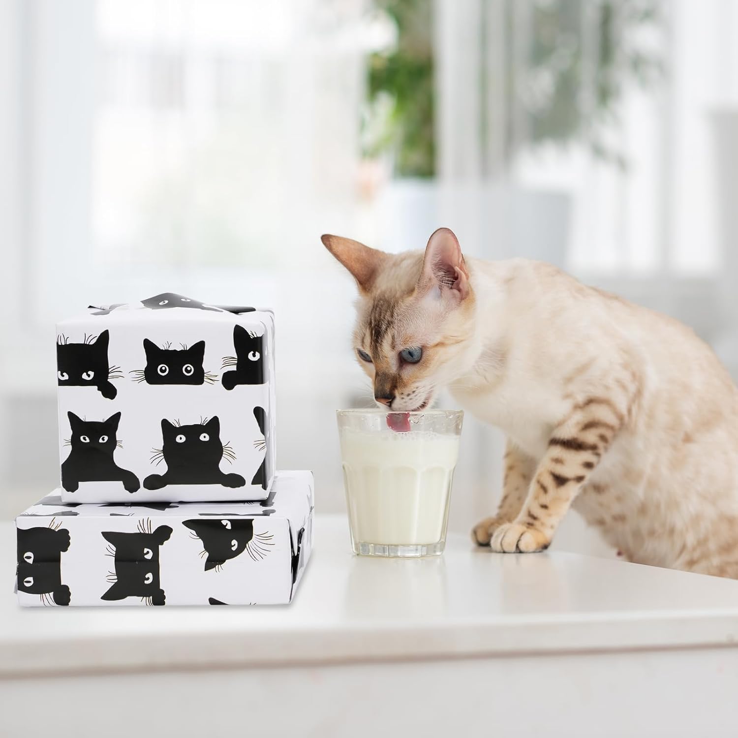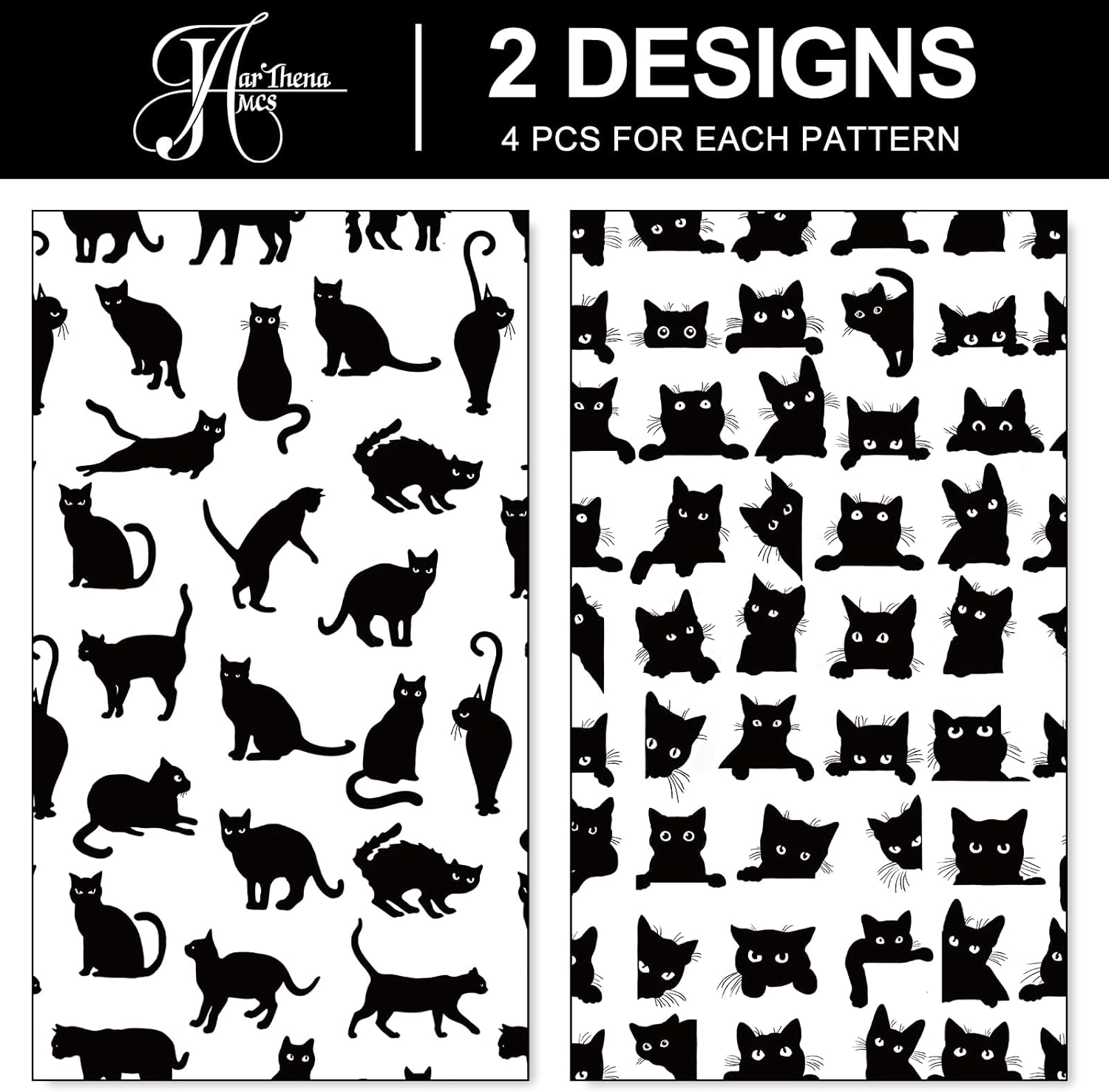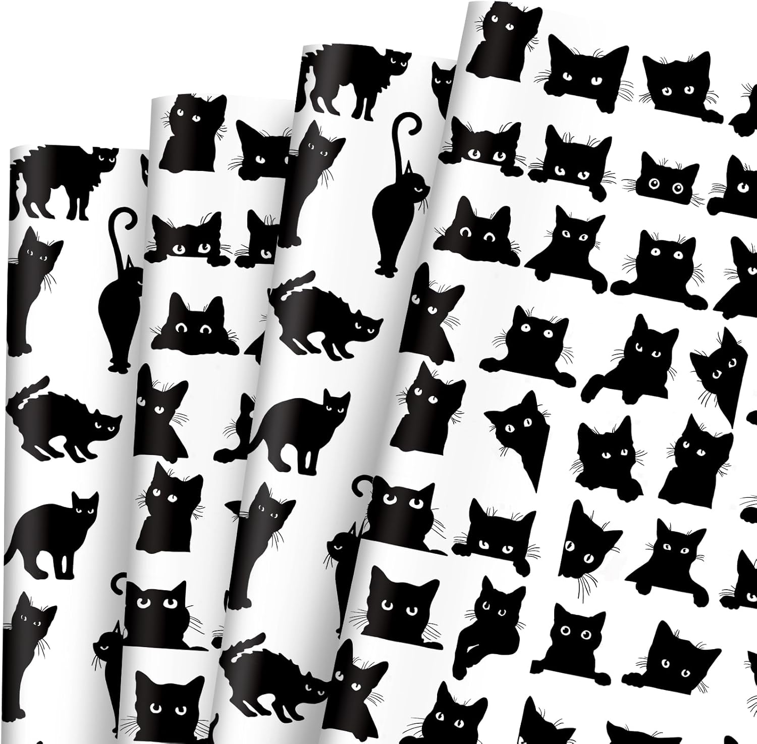• THE PACKAGE INCLUDES: 8 sheets black cat wrapping paper in two different designs, each type for 4 sheets, enough to meet your needs for gift wrapping and art craft making.