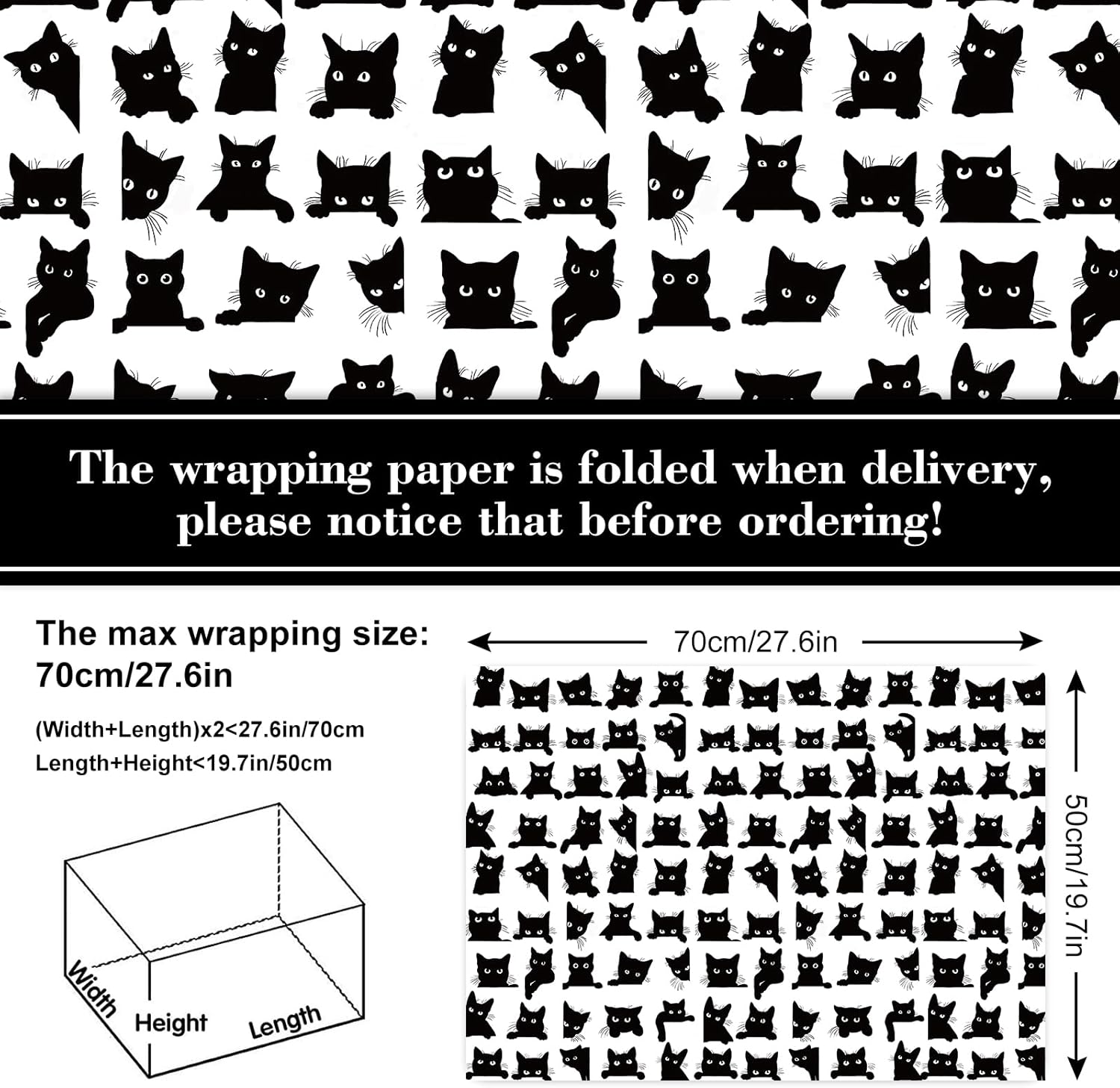 • CAT DESIGN: Our wrapping paper adopts cartoon design with various black cats, cute and delicate, will nicely increase the fun atmosphere, great for gift wrapping.