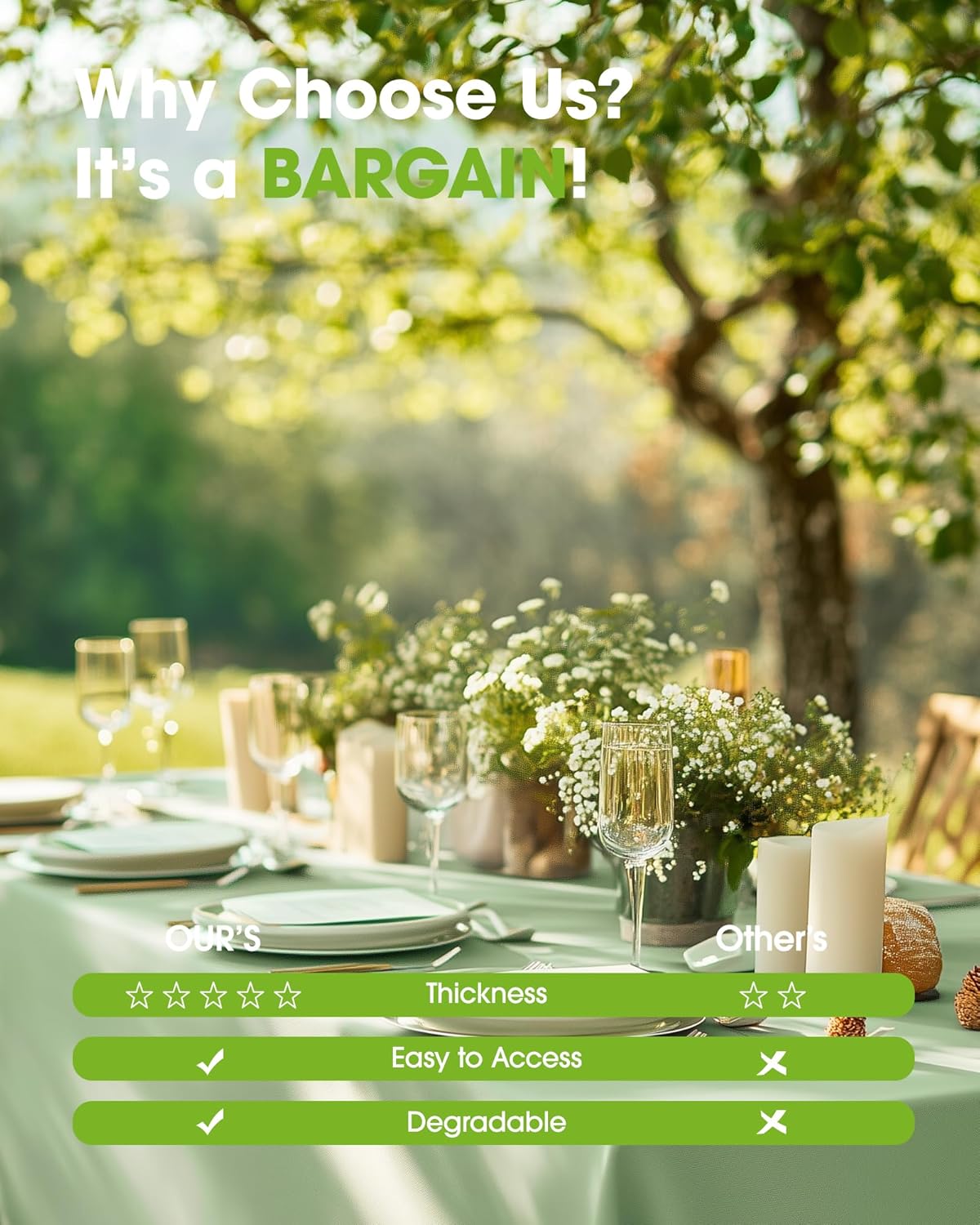 • FOR ALL OCCASIONS: With the universal size and multiple color options, our disposable table cloths are widely applicable to kinds of events, parties, church functions, work events, one-time use, and even practical everyday use.
