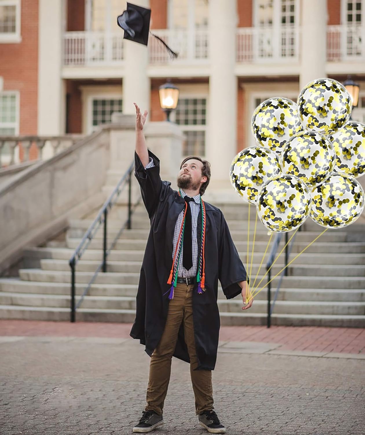 • YOU WILL GET: The Gold Black balloons set including 50 pcs confetti party balloons. all of them filled with Gold Blacken paper confetti dots already put in the transparement latex balloons. they can both hold helium and air. perfect for decoration any party.