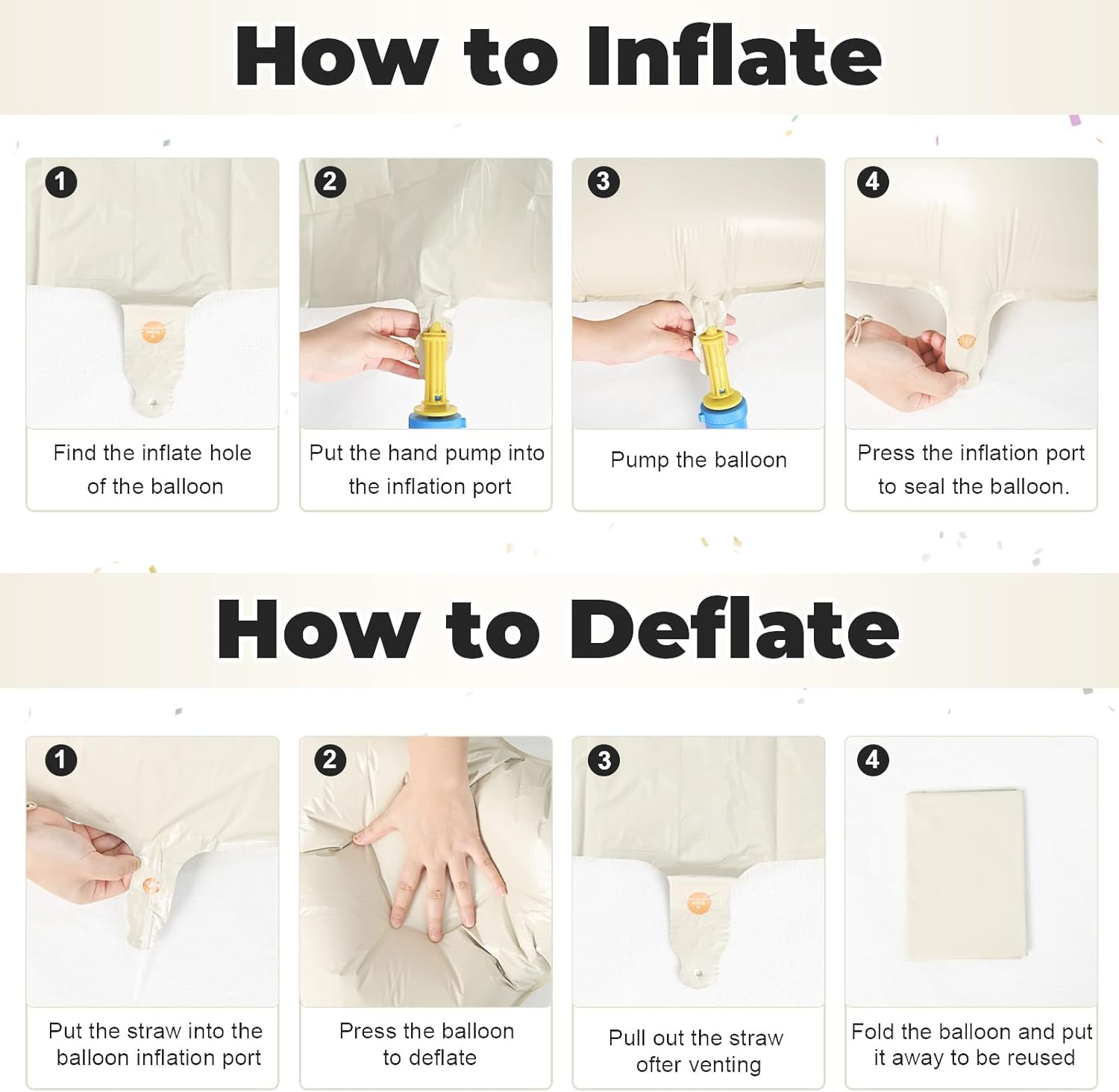 • 🎈 High Quality Material: Our cream alphabet balloons are made from grade mylar material, safe, non-Toxic, high quality, durability, long-lasting, self-inflating and reusable. It can be filled with air or helium, and 90% filling is enough to hold it for a long time. After the inflation is completed, just pinch the inflation port to complete the inflation.