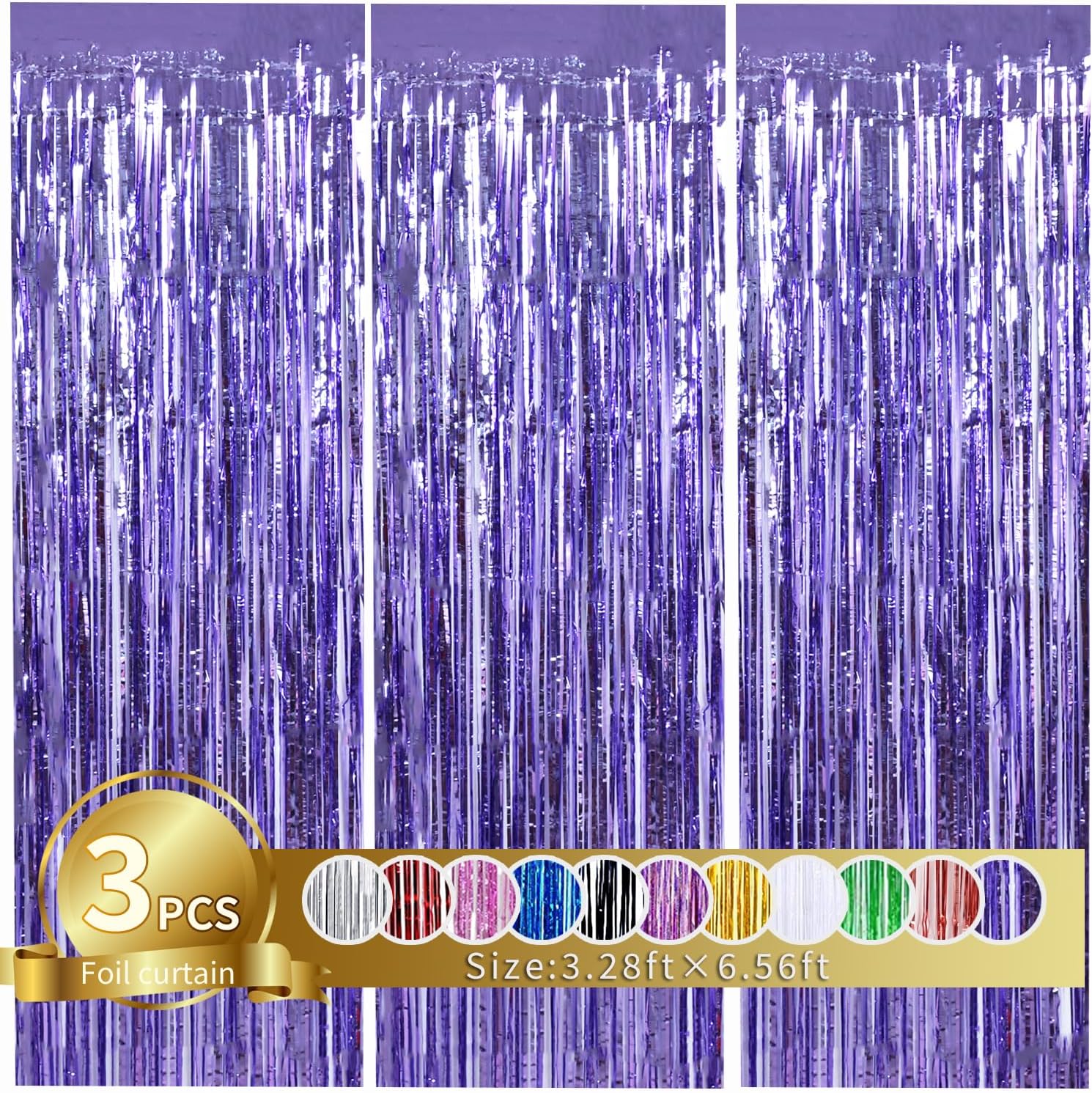 TONIFUL 3Pcs Light Purple Door Streamers Purple Photo Booth Backdrop Metallic Streamers Foil Fringe Curtains for Birthday,Christmas,New Year,Bachelorette,Grad Party Streamers Decor(9.9ft x 6.6ft)