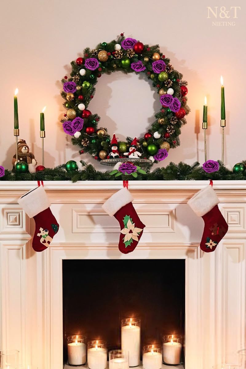 N&T NIETING Artificial Flowers Glowing Purple Flowers Foam 50pcs Glitter Roses Real Looking Fake Roses with Stem for DIY Wedding Bouquets Centerpieces Bridal Shower Party Home Decorations