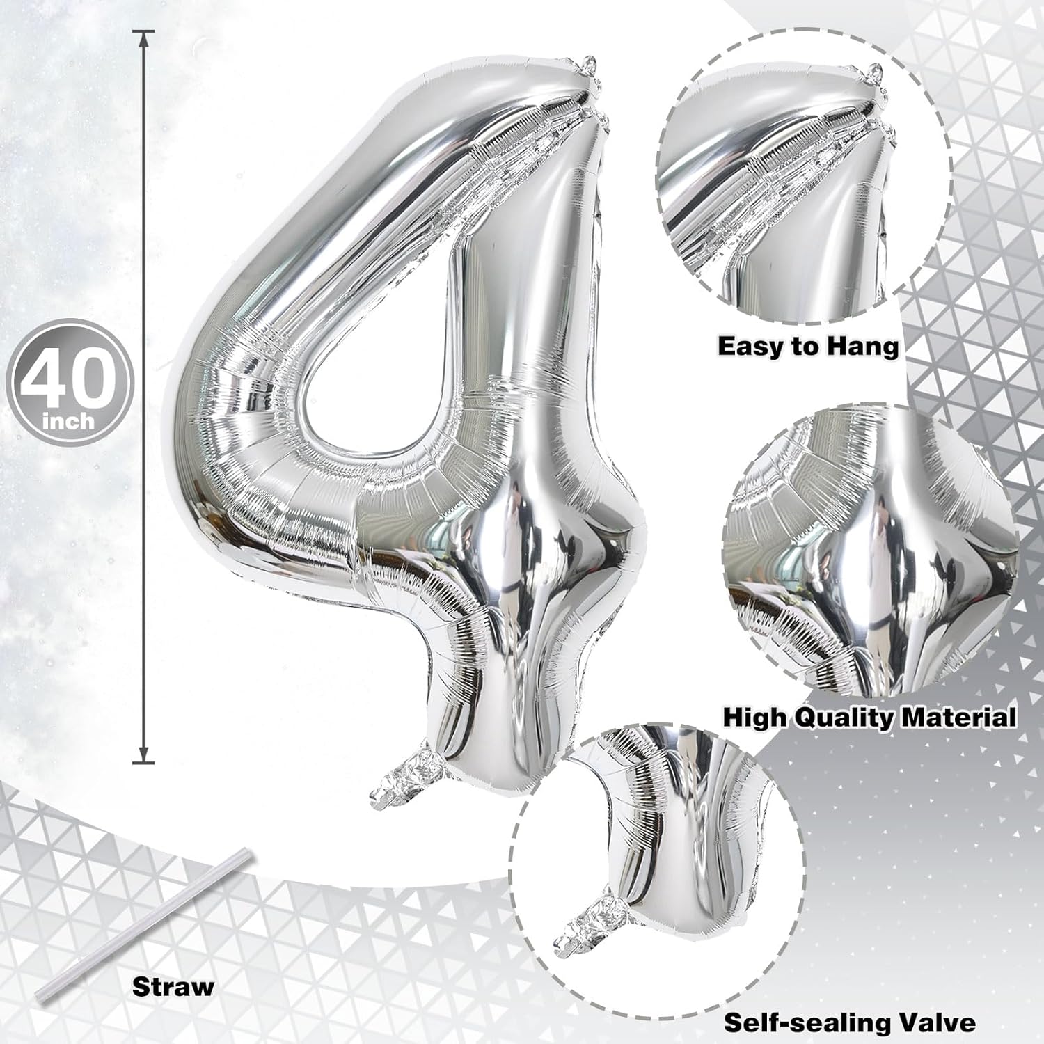 • πŸ’“ Silver Number 14 Balloon: Our package included 40 inch number 1 & 4 balloon and 1pcs straw. Simply inflate the balloon using the straw, and you're ready to party! Silver number foil balloons are the best for girls or boys birthday party decoration.