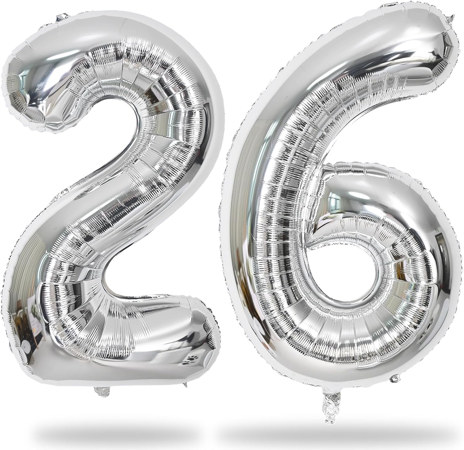 • ๐Ÿ’“ Silver Number 26 Balloon: Our package included 40 inch number 2 & 6 balloon and 1pcs straw. Simply inflate the balloon using the straw, and you're ready to party! Silver number foil balloons are the best for women men birthday party decoration.