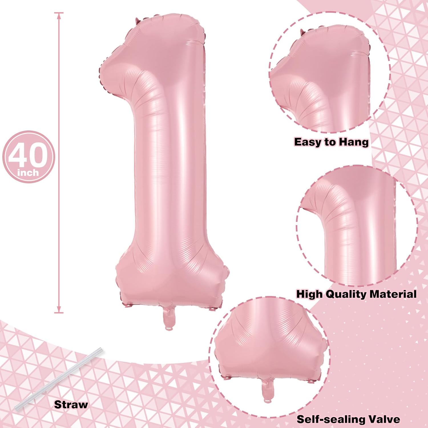 • ๐Ÿ’“ Pastel Pink Number 11 Balloon: Our package included 40 inch number 1 & 1 balloon and 1pcs straw. Simply inflate the balloon using the straw, and you're ready to party! Light pink number foil balloons are the best for girls birthday party decoration.