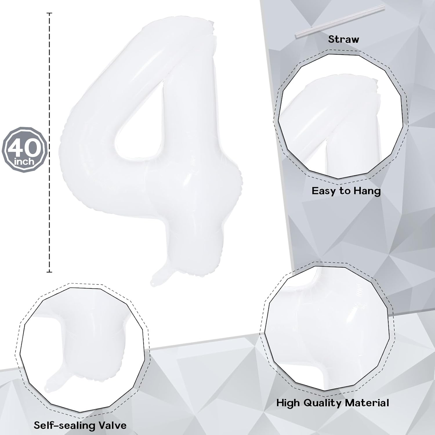 • ๐Ÿ’“ White Number 40 Balloon: Our package included 40 inch number 4 & 0 balloon and 1pcs straw. Simply inflate the balloon using the straw, and you're ready to party! White number foil balloons are the best for women men birthday party decoration.
