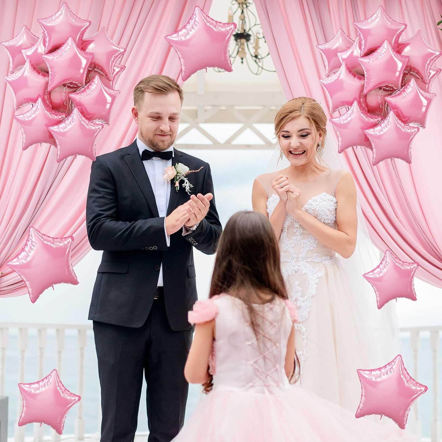 • Pink Stars Party Balloons: Pack of 10, designed with Giant 18 inch stars foil balloons, each balloons set comes with a straw and ribbon.