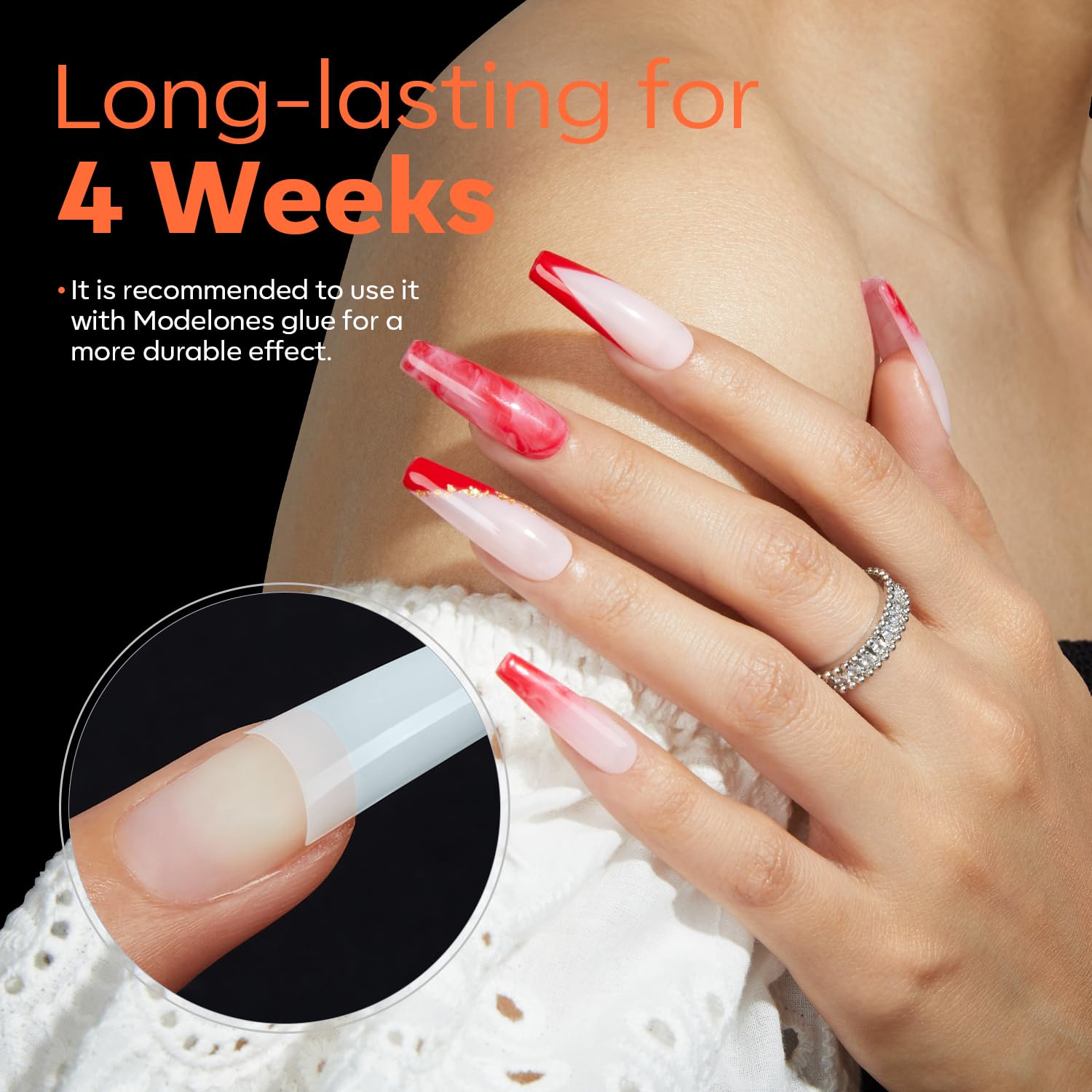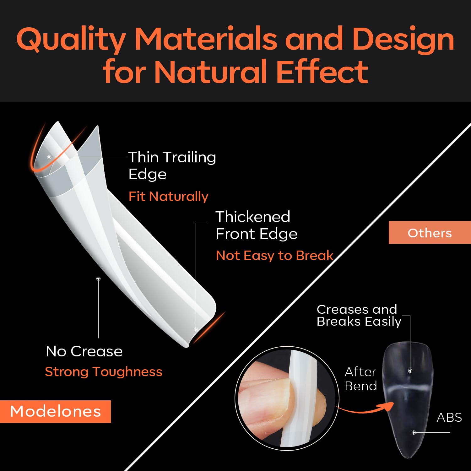 • Upgrade High-Quality Material: Modelones nail tips are made with high-quality material, they are breathable, lightweight, and durable, making your nails look natural and nice. Have no toxins, no smell, and no harm to your nails and health. Pre-shaped and easy to apply