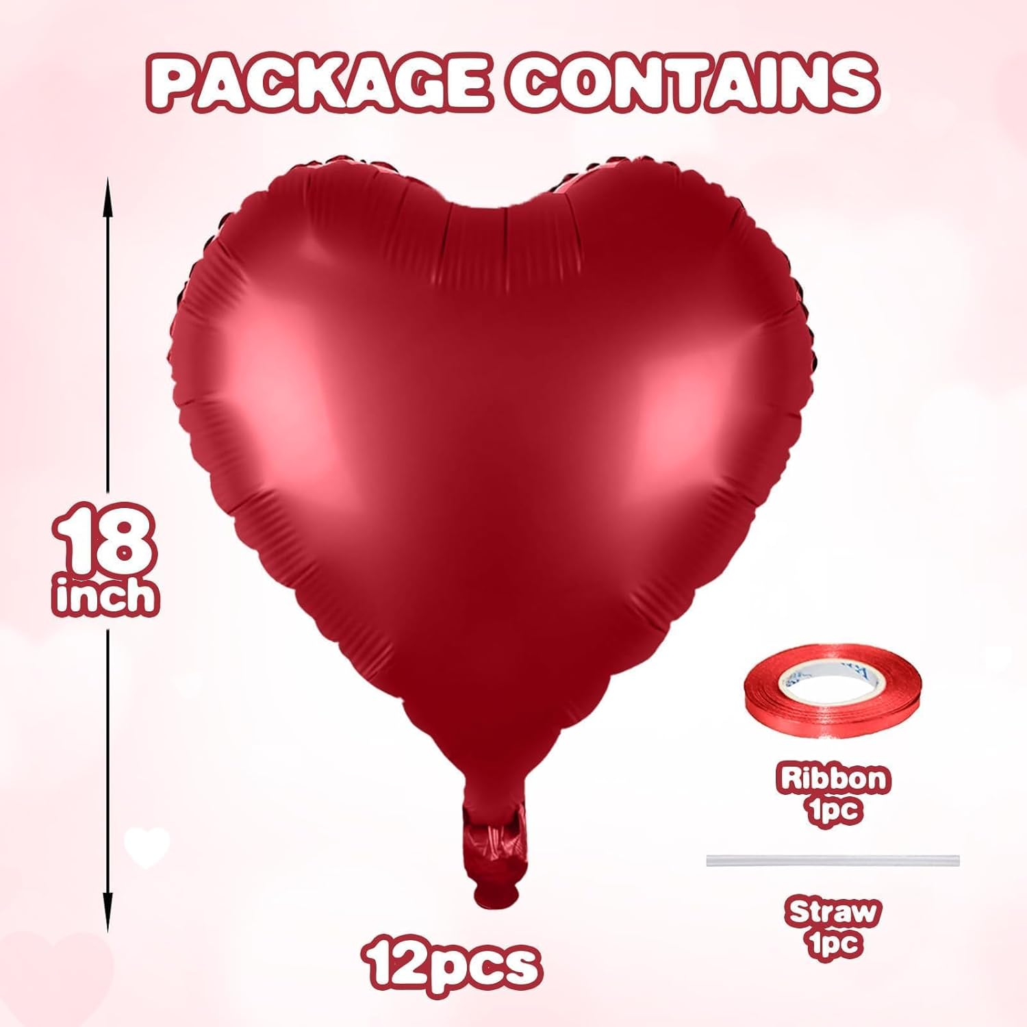 12 Pcs Heart Balloons, 18 inch Metallic Red Heart Shaped Balloons, Big Helium Balloon, Love Foil Balloon for Wedding Baby Shower Anniversary Backdrop Valentine Party Decoration