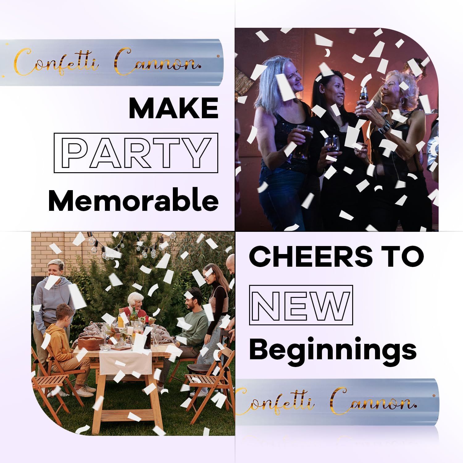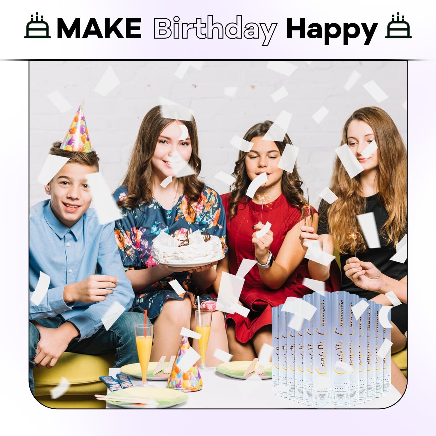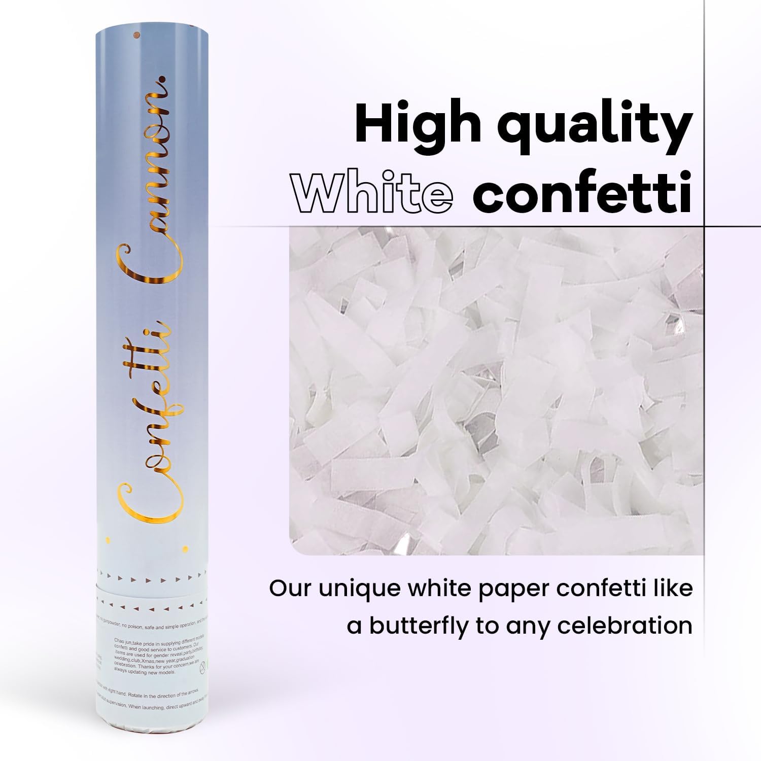 • Party Poppers with White Confetti - Our confetti poppers 12 inch are made of high quality confetti, ensuring a celebartion that's both fun and safe. confetti popper cannons are for any occasion, form weddings and engagements to birthdays and anniversaries, graduation Christmas New Year party.