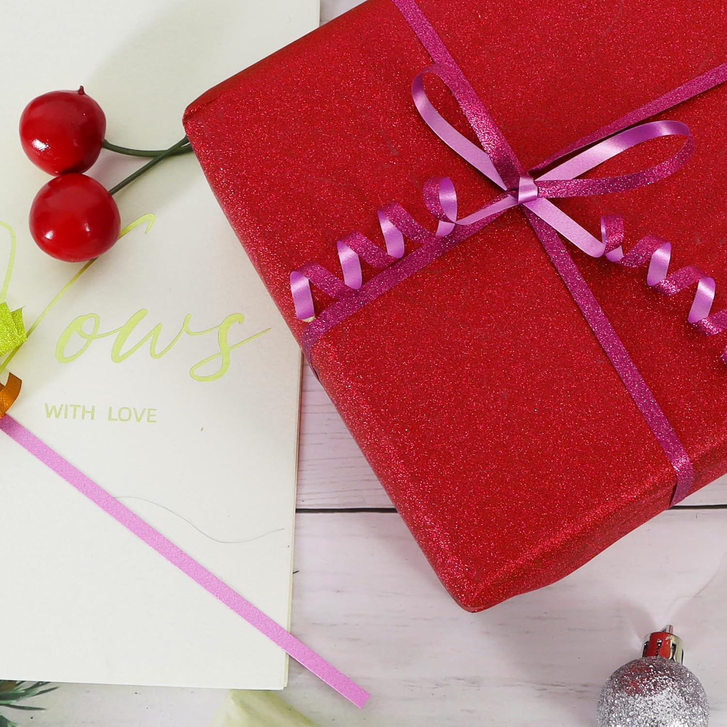 BEISHIDA Glitter Ribbon - 500 Yards Hot Pink, Curling Crimped, Shiny for Gift Wrapping, Birthday Party, Festival, Art Craft, Florist Flowers Decoration