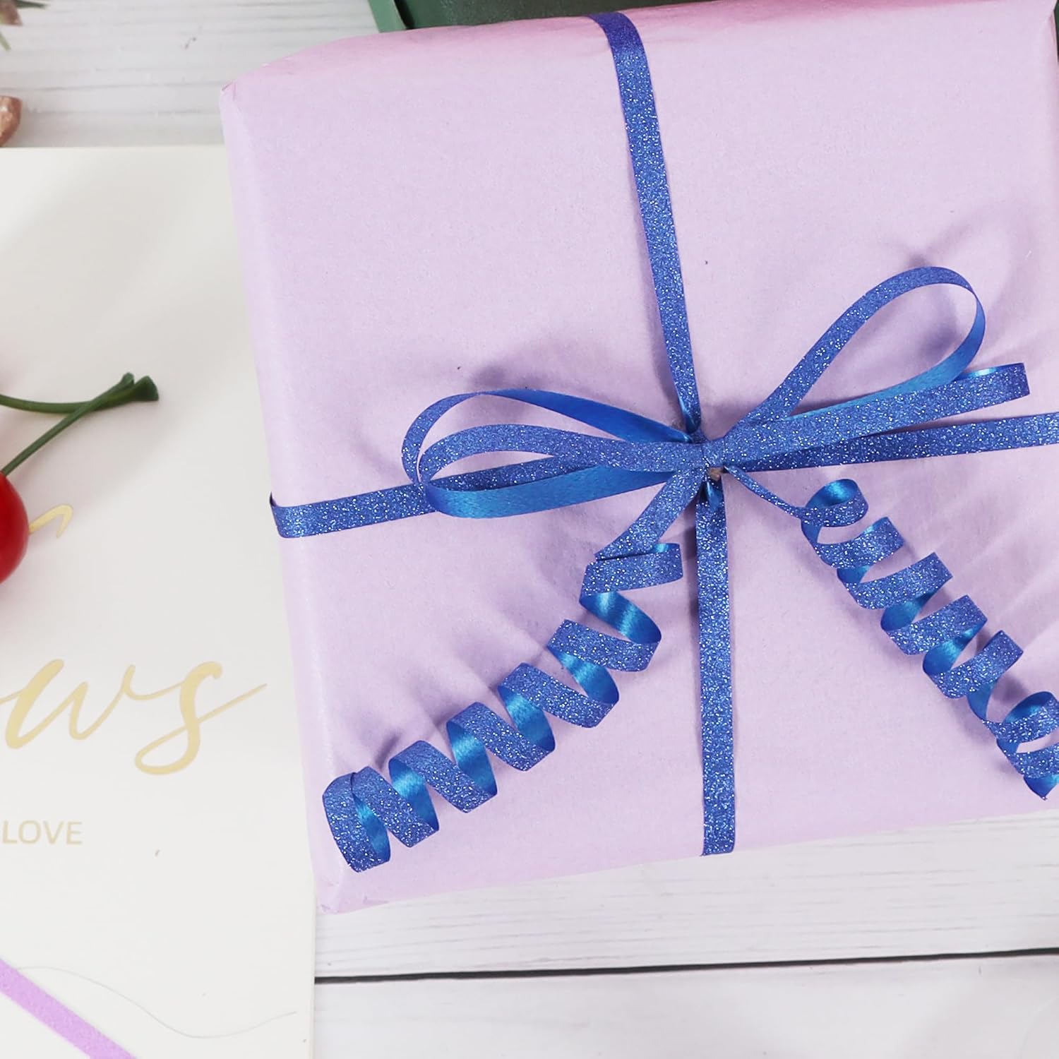 BEISHIDA 500 Yards Blue Glitter Ribbon Curling Crimped, Glitter Ribbon Balloon String Shiny for Gift Wrapping &Birthday Party Festival Art Craft Decor Florist Flowers Decoration