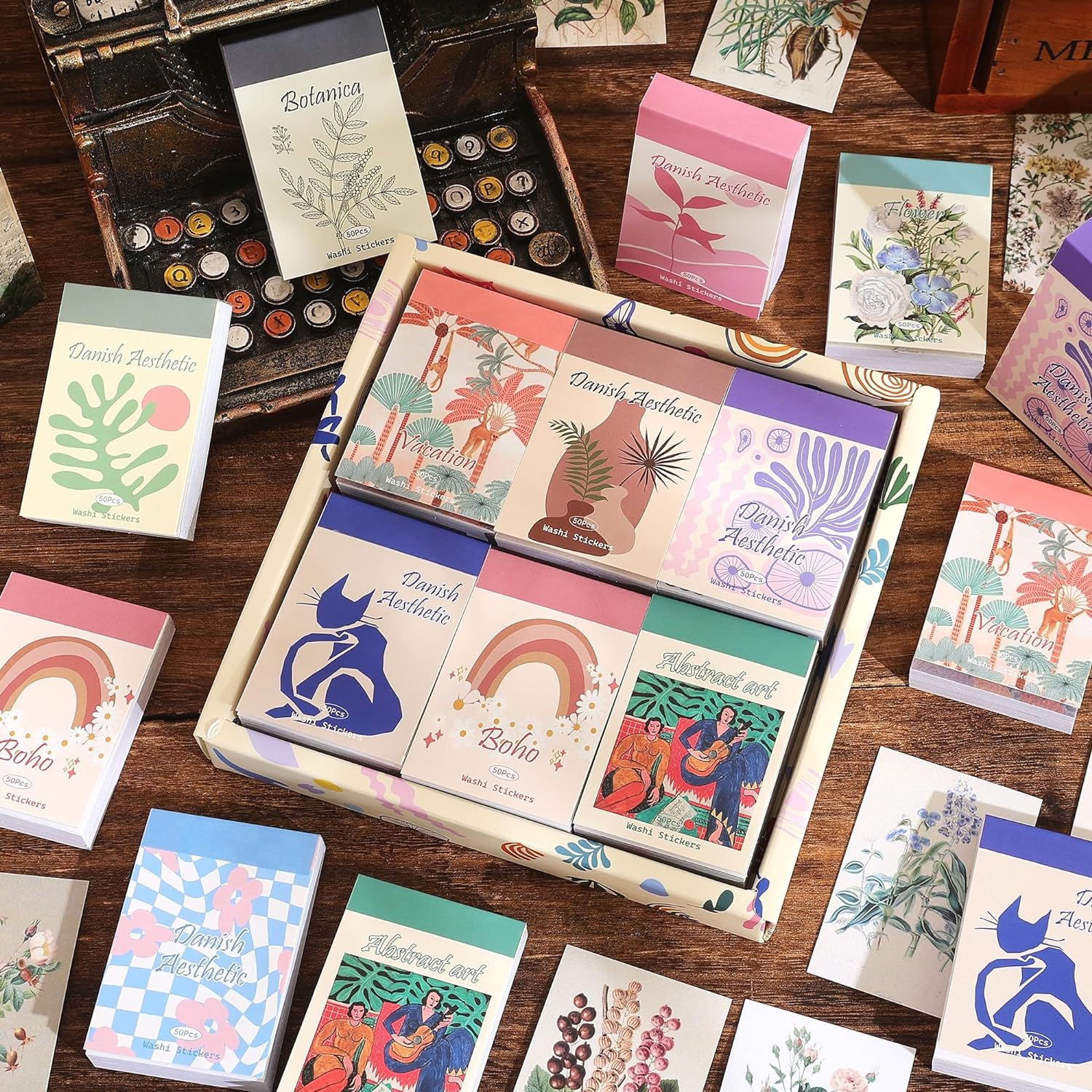 12 Sets 600 Sheets Washi Stickers for Journaling, Boho, Abstract, Vintage Scrapbook Sticker Set for Bullet Journal Art Diary Card Craft Gifts Planner Notebook