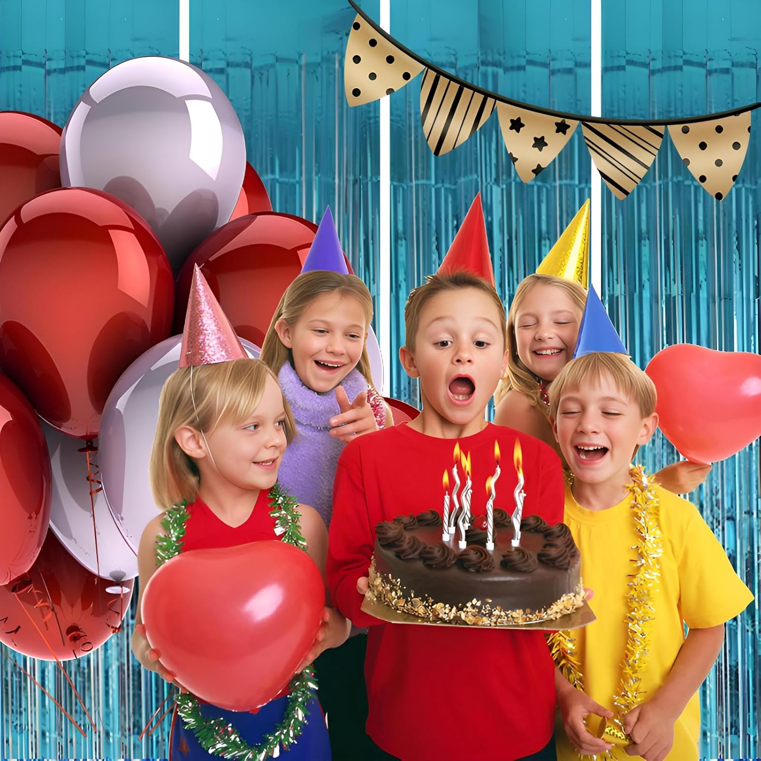 • Pair with other party decorations: Tinsel backdrop curtain can be paired with LED lights, balloons, banners, wreath, garlands, swirl streamer, tissue paper pom poms.