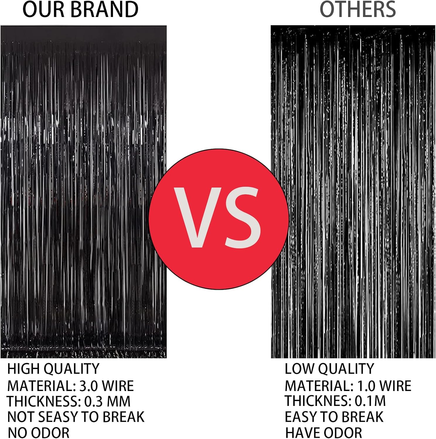 Keyali 4 Pack 3.3 * 8.3 ft Foil Curtain Metallic Tinsel Fringe Curtains Photo Booth Props Backdrop for Birthday Wedding Engagement Baby Shower Christmas Holiday Celebration Partyl,Black
