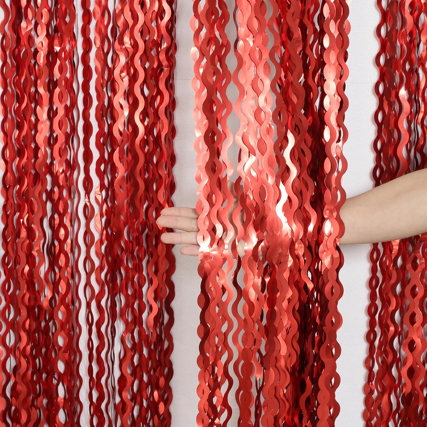• Wavy Shape and Quality Material: The red metallic tinsel backdrop is made of aluminum foil with wavy shape,You can overlap or side by side the fringe backdrop make it more fuller and better look
