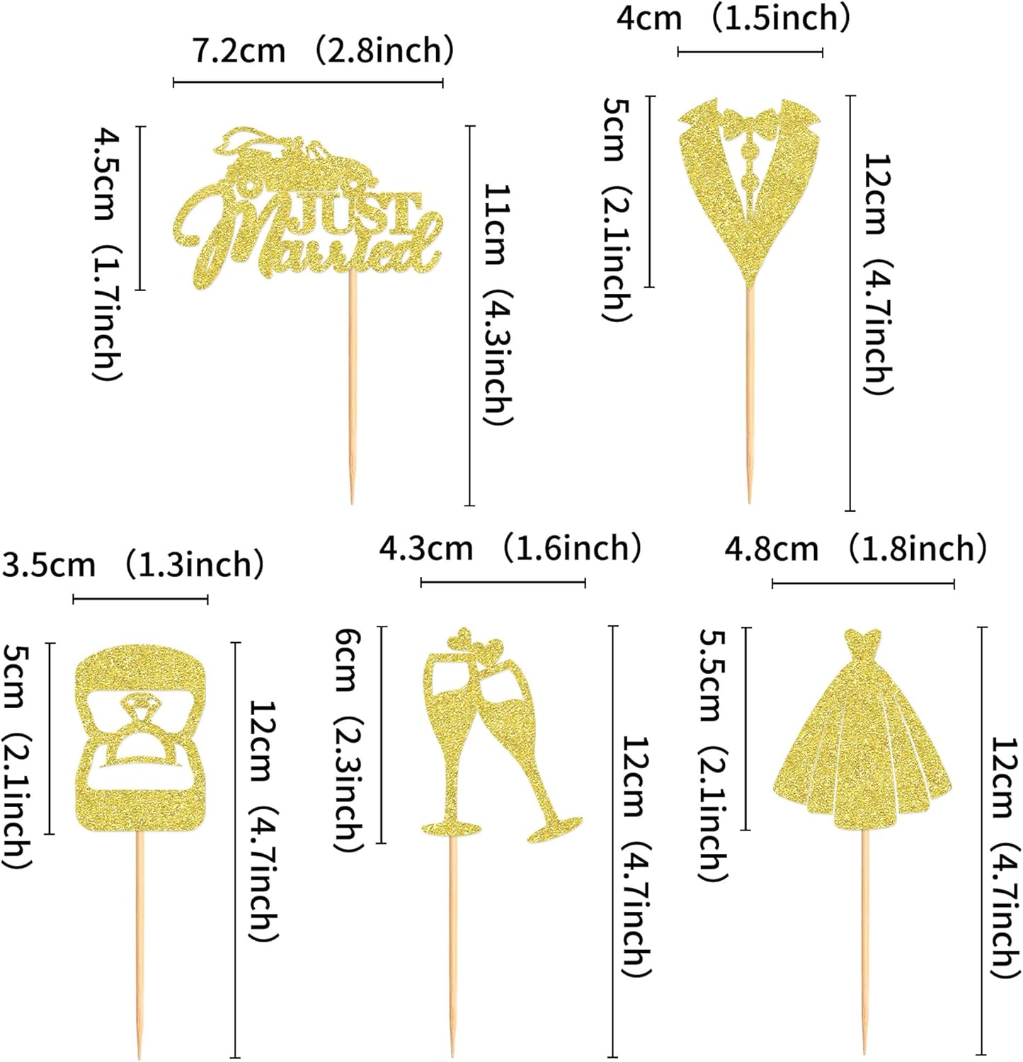 • 🍰【Unique design】:Sparkling adorable bride and groom cupcake toppers makes your cupcakes become the focus of bridal shower or wedding party. All cupcake toppers are pre-assembled, it can save much time for you.