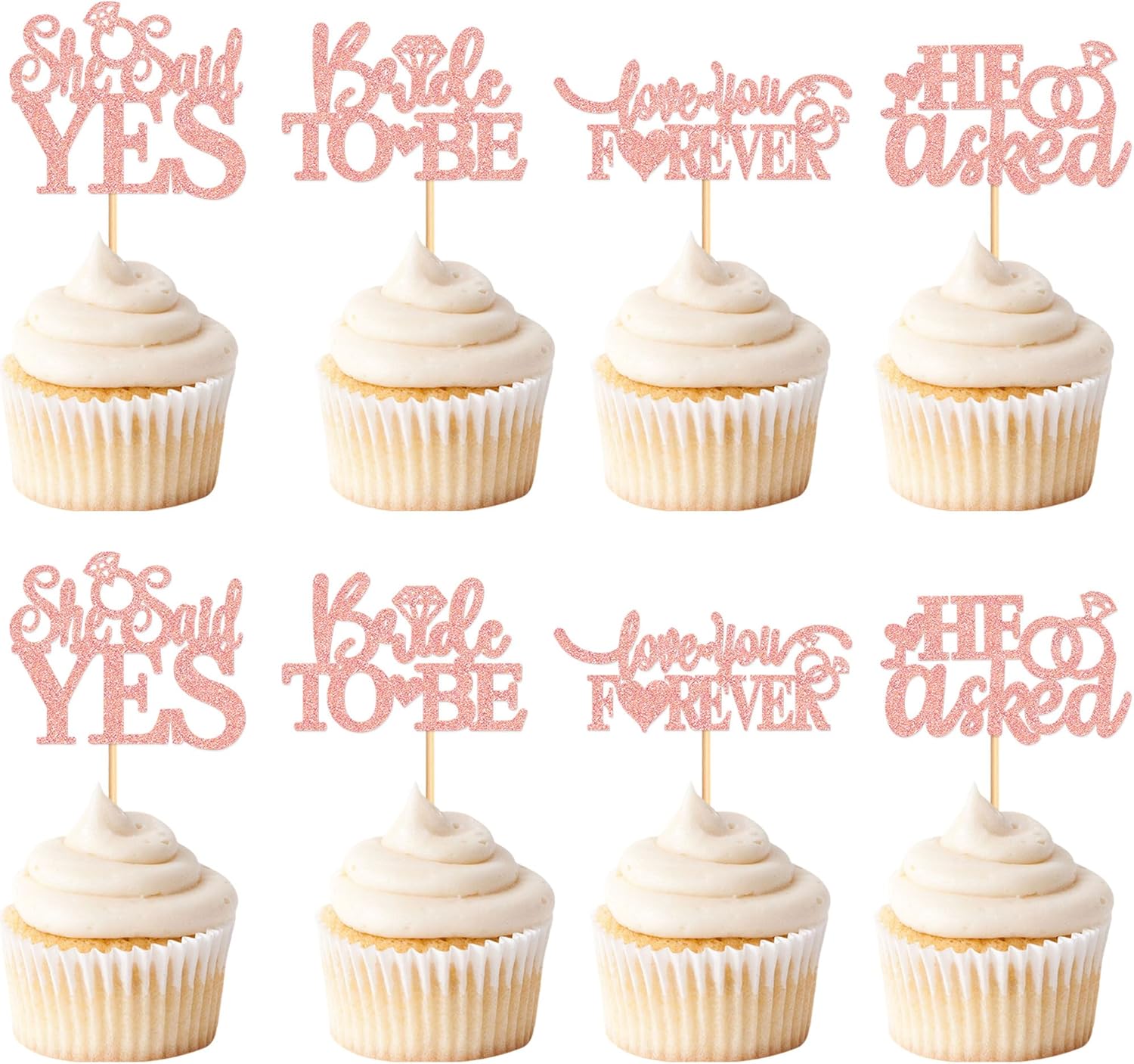 24 Pcs He Asked She Said Yes Cupcake Toppers Cake Picks for Wedding Engagement Party Cake Picks for Wedding Bridal Shower Party Cake Decorations Rose Gold