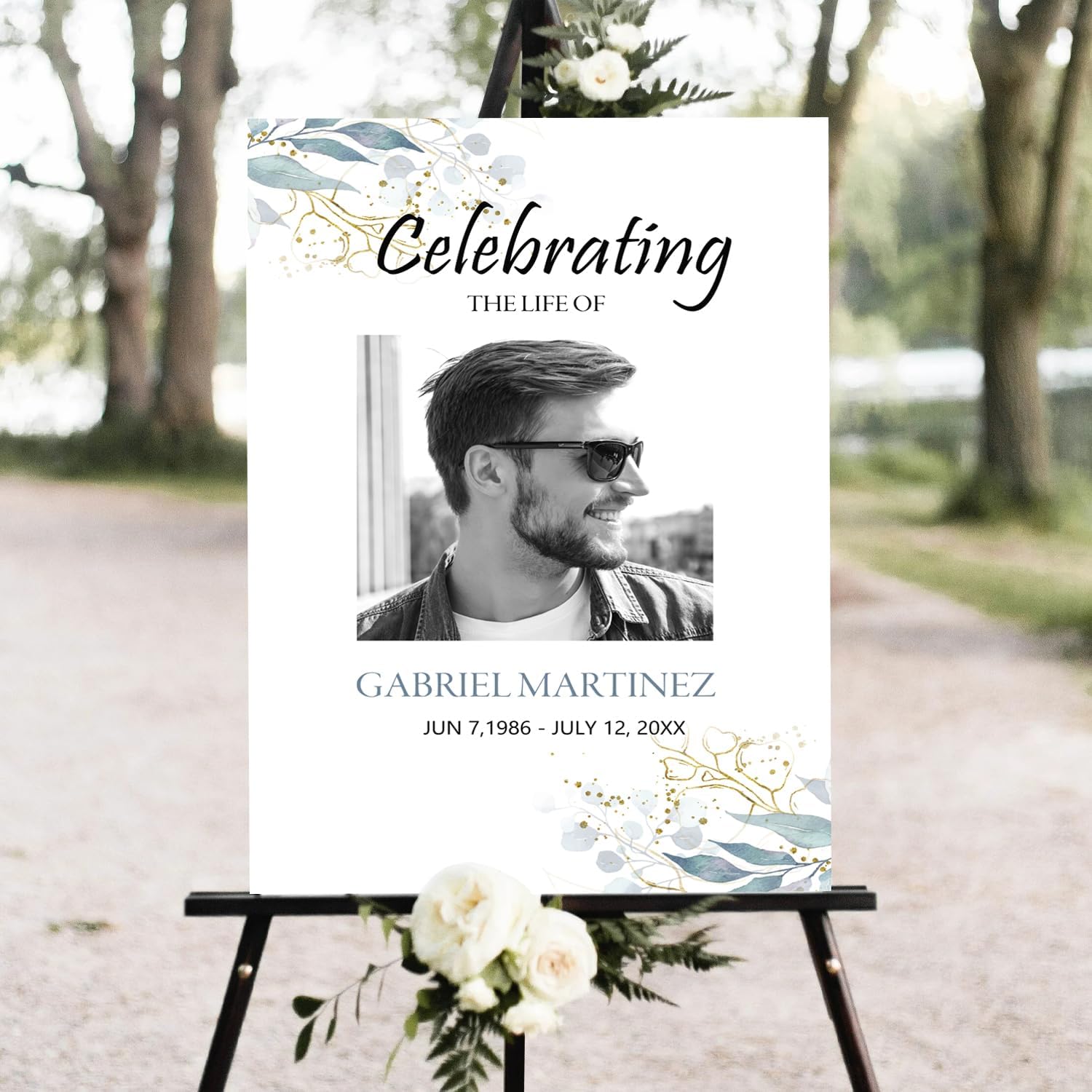 Blue Celebration of Life, Funeral Welcome Sign, Large Memorial Poster, Funeral decoration, Obituary Memorial Service, Funeral Program, Floral Funeral Welcome Sign, In-loving Memory Sign