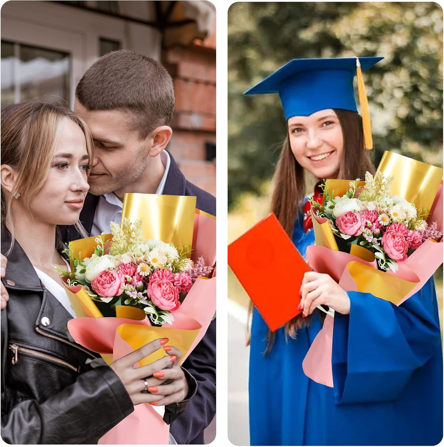 • 【Quality】The double side color floral wrapping paper is Made of high-quality safe durable and waterproof plastic,so do not worries about water when you wrap for flowers,exquisite dyeing and printing, flower paper does not fade.